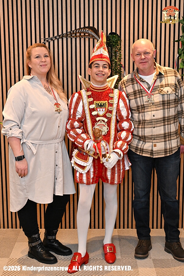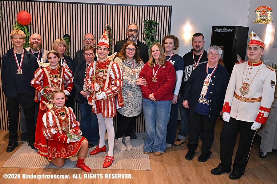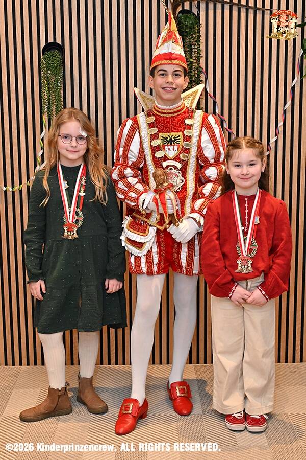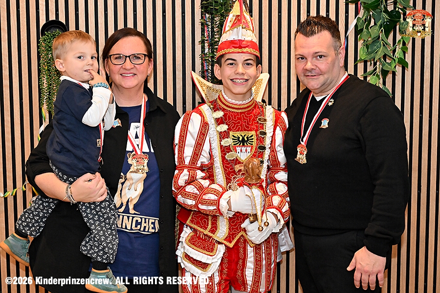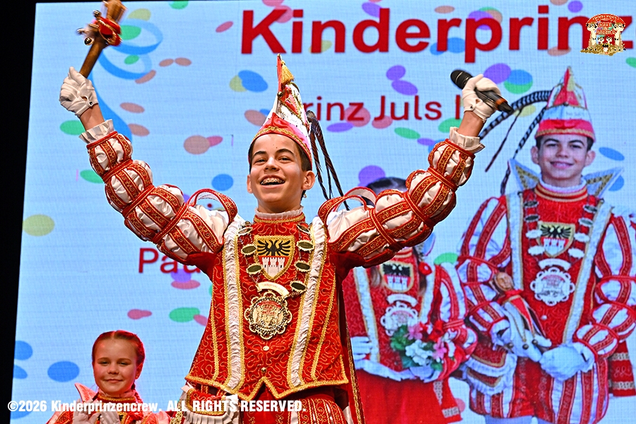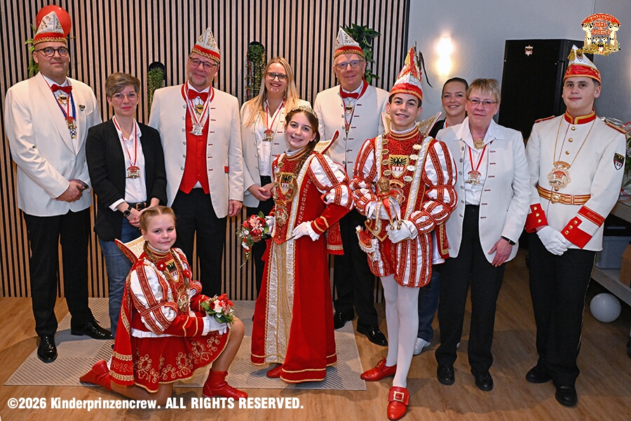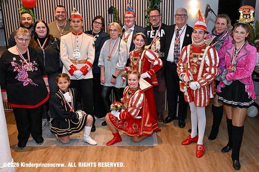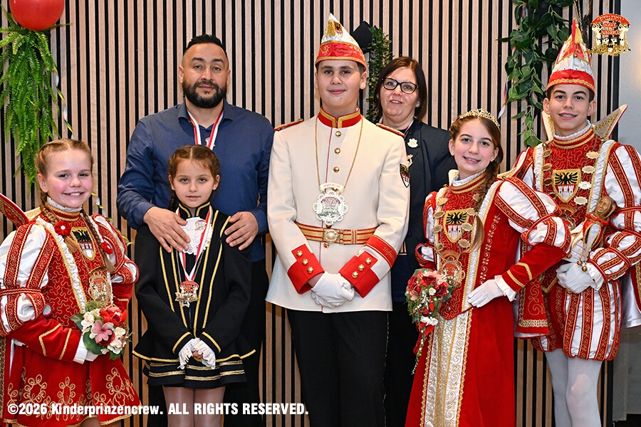 100 Unsere Kürung - Premiere - Im so genannten „Gürzenich“ von Duisburg, dem Steinhof in Huckingen fand am Sonntag, 4. Januar 2026, zum ersten Mal die Kürung einer Kinderprinzencrew statt. Wir sind nun als Prinz Juls I., Prinzessin Aileen I. mit Hofmarschall Sami und Pagin Paula der Stadt Duisburg 2026 inthronisiert.