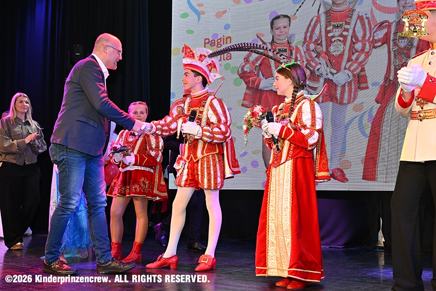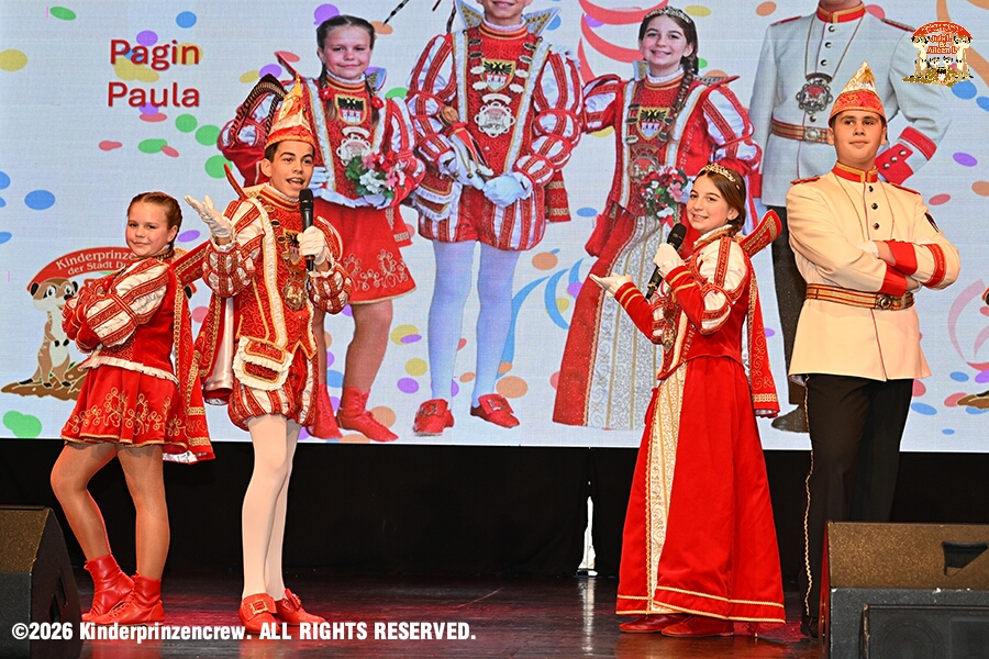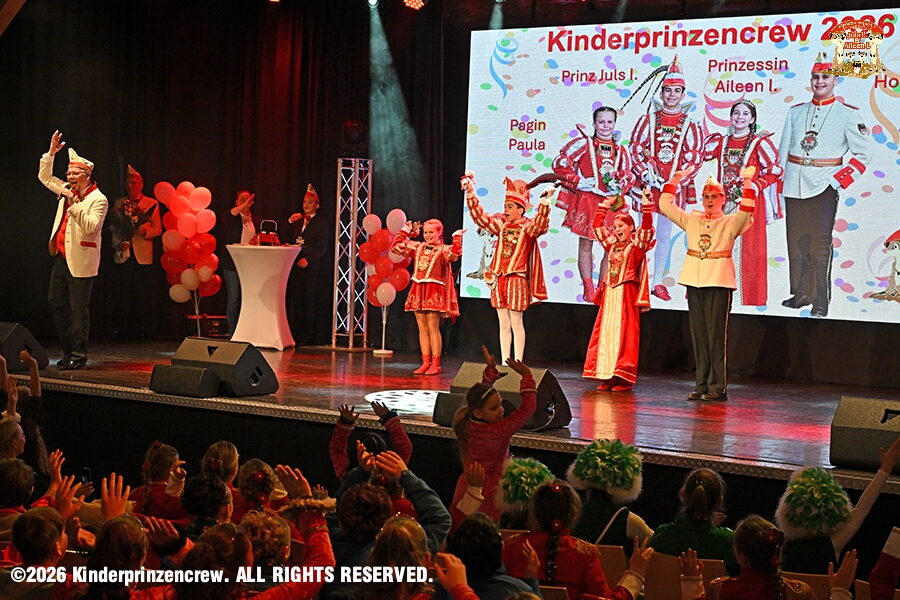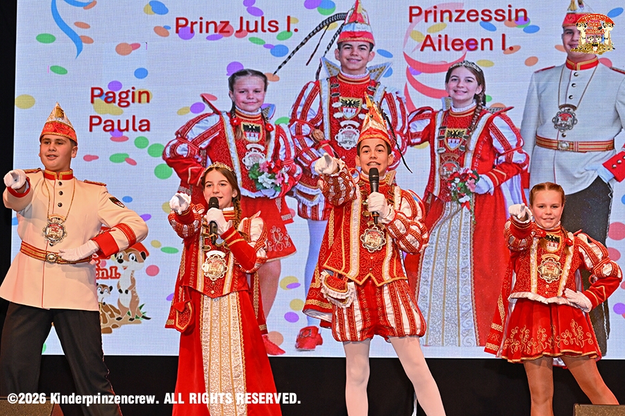 40 Unsere Kürung - Premiere - Im so genannten „Gürzenich“ von Duisburg, dem Steinhof in Huckingen fand am Sonntag, 4. Januar 2026, zum ersten Mal die Kürung einer Kinderprinzencrew statt. Wir sind nun als Prinz Juls I., Prinzessin Aileen I. mit Hofmarschall Sami und Pagin Paula der Stadt Duisburg 2026 inthronisiert.