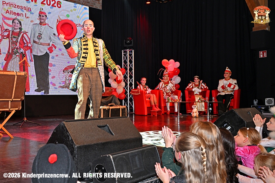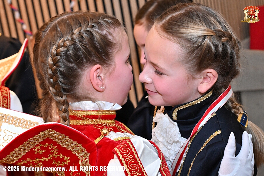 69 Unsere Kürung - Premiere - Im so genannten „Gürzenich“ von Duisburg, dem Steinhof in Huckingen fand am Sonntag, 4. Januar 2026, zum ersten Mal die Kürung einer Kinderprinzencrew statt. Wir sind nun als Prinz Juls I., Prinzessin Aileen I. mit Hofmarschall Sami und Pagin Paula der Stadt Duisburg 2026 inthronisiert.