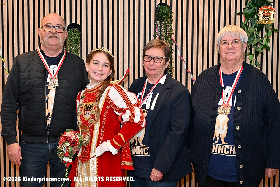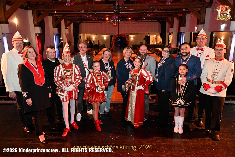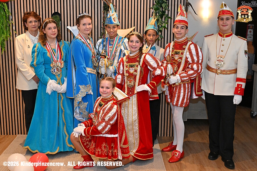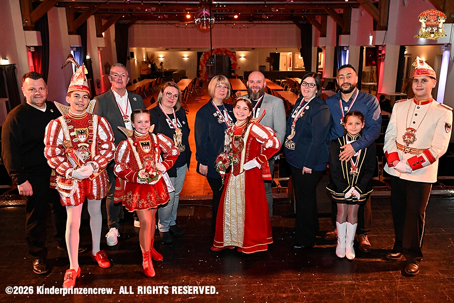 124 Unsere Kürung - Premiere - Im so genannten „Gürzenich“ von Duisburg, dem Steinhof in Huckingen fand am Sonntag, 4. Januar 2026, zum ersten Mal die Kürung einer Kinderprinzencrew statt. Wir sind nun als Prinz Juls I., Prinzessin Aileen I. mit Hofmarschall Sami und Pagin Paula der Stadt Duisburg 2026 inthronisiert.