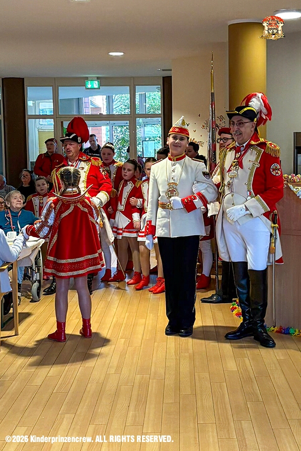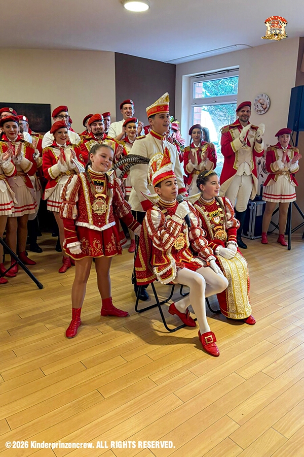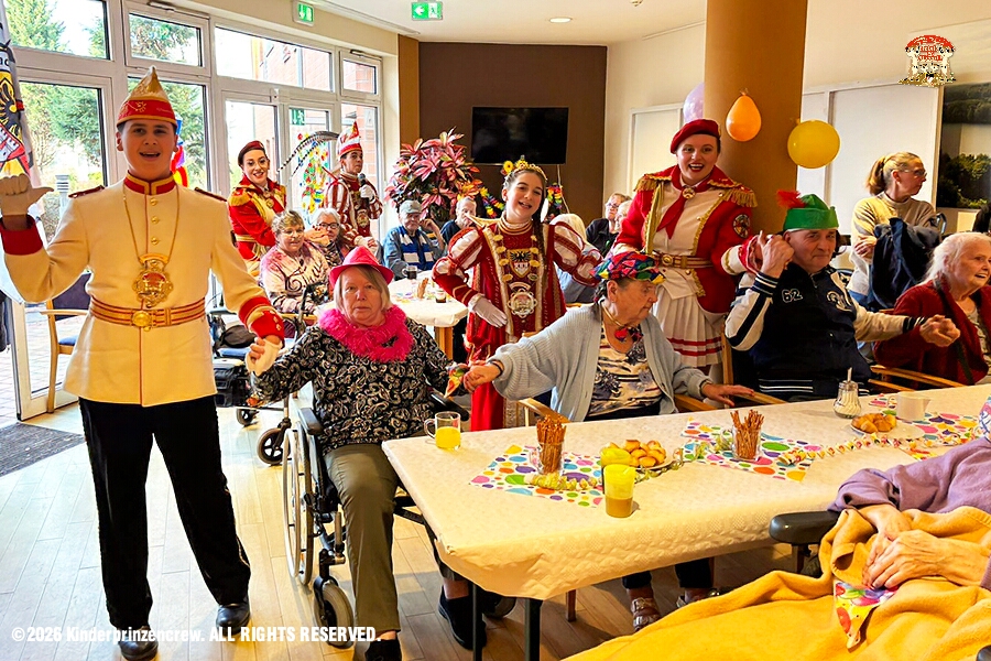 Mittags begann unsere Tour, insgesamt 7 Auftritte, im Hewag Seniorenstift an der Karl-Jarres-Straße. Es folgte dann im Karl Martin Haus bei den Jungschützen, begleitet von unserer Minigarde, der nächste Termin. Nach sportlichen Stop dann beim OSC in Rheinhausen ging es zur Mädchensitzung von Rot-Weiß Hamborn-Marxloh. Von dort in die City, einmal zur die Galasitzung der Bürgergarde im WYNDHAM Hotel und dann die Damensitzung vom Sonnigen Süden. Zum Schluss war dann noch das Kostümfest der „Hippen“ in Großenbaum.