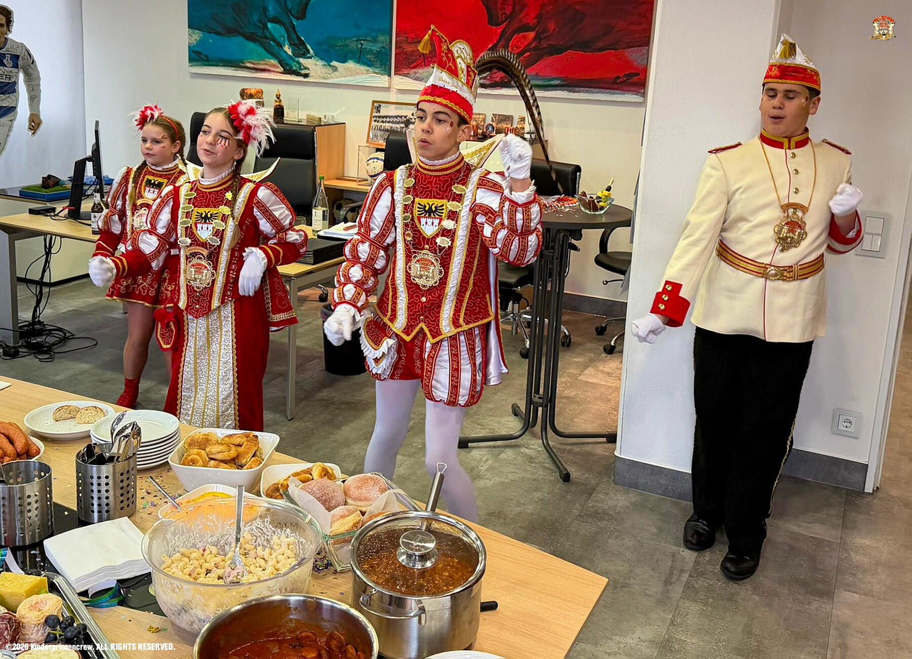27 Weiberfastnachts Tour, 11. Februar - Schon um 9 Uhr begann dieser ereignisreicher Tag für uns mit der Karnevalsfeier in der GGS Habichtstraße. Im HDK Festzelt wurden wir danach fanatisch gefeiert. Weiter ging es dann zu Hargreaves und ins LANUV zur der Firmenfeiern. Zwischendurch seine Seniorenfeier der AWO Karl-Jarres-Straße. Im Ratskeller feiern die Nordvereine Altweiber. In Folge fahren wir nach Laar, einmal zum Familienkarneval der KG Rot-Gold und die KFD feier im St. Ewald. Der vorletzte Auftritt dann die Altweibersitzung bei der Ehrengarde bevor es zum erneuten Heimspiel zur Altweiber-Party in den Heimathafen geht.