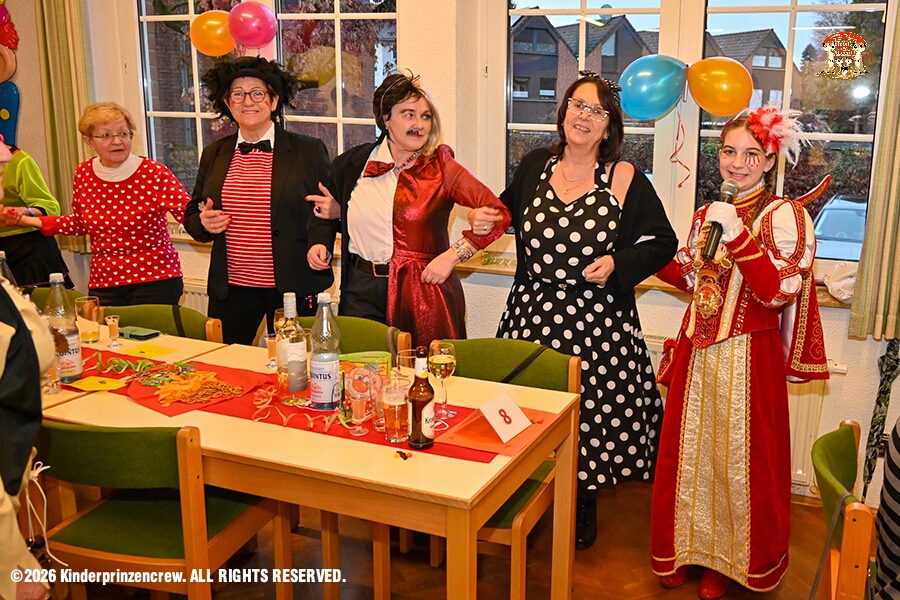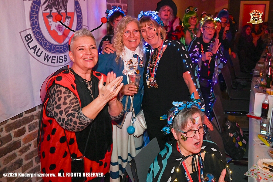 116 Weiberfastnachts Tour, 11. Februar - Schon um 9 Uhr begann dieser ereignisreicher Tag für uns mit der Karnevalsfeier in der GGS Habichtstraße. Im HDK Festzelt wurden wir danach fanatisch gefeiert. Weiter ging es dann zu Hargreaves und ins LANUV zur der Firmenfeiern. Zwischendurch seine Seniorenfeier der AWO Karl-Jarres-Straße. Im Ratskeller feiern die Nordvereine Altweiber. In Folge fahren wir nach Laar, einmal zum Familienkarneval der KG Rot-Gold und die KFD feier im St. Ewald. Der vorletzte Auftritt dann die Altweibersitzung bei der Ehrengarde bevor es zum erneuten Heimspiel zur Altweiber-Party in den Heimathafen geht.