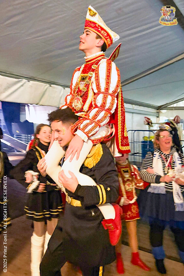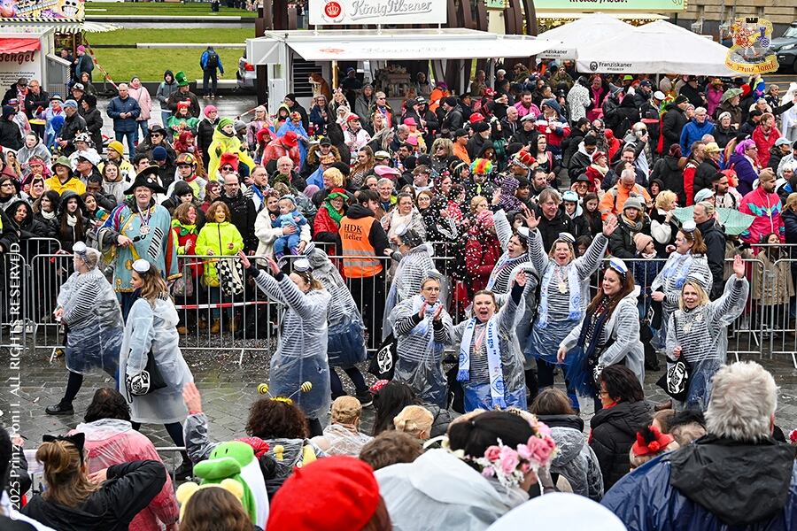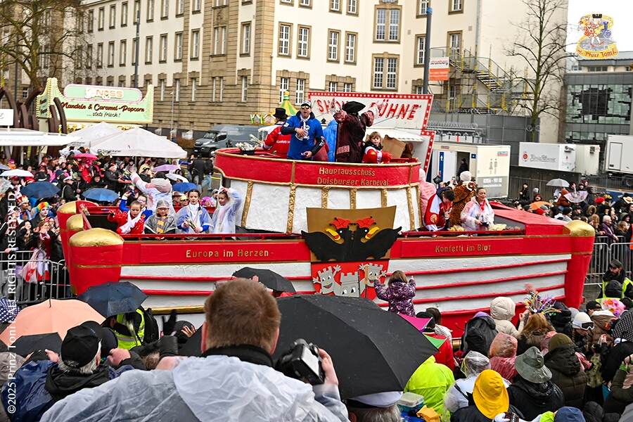 25 Rosenmontag 2026 - Es war eigentlich ein toller Tag, wenn nur das Wetter mitgespielt hätte. Beim Wecken von Prinz Toni I. vor dem WYNDHAM Hotel Duisburger Hof war es schon recht ungemütlich. Danach dann ein paar warme Stunden in unserem Rat, beim Prinzenwecken mit OB Sören Link. Pünktlich zum Start des Rosenmontagszugs geht es los mit dem Regen, bis auf kurze Momente hielt er an bis zum Ende des Zuges. Nachdem sich Alle im König Pilsener Festzelt auf gewärmt hatten, kamen auf der Bühne die Verabschiedung von uns, der Kinderprinzencrew 2026, und Prinz Toni I.