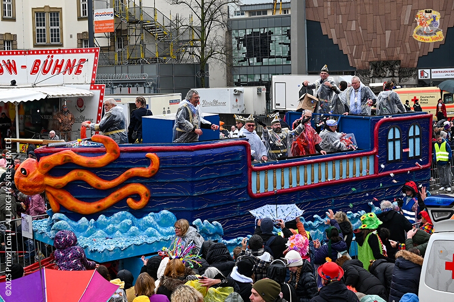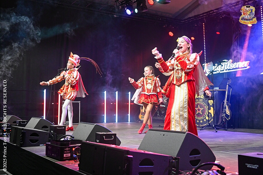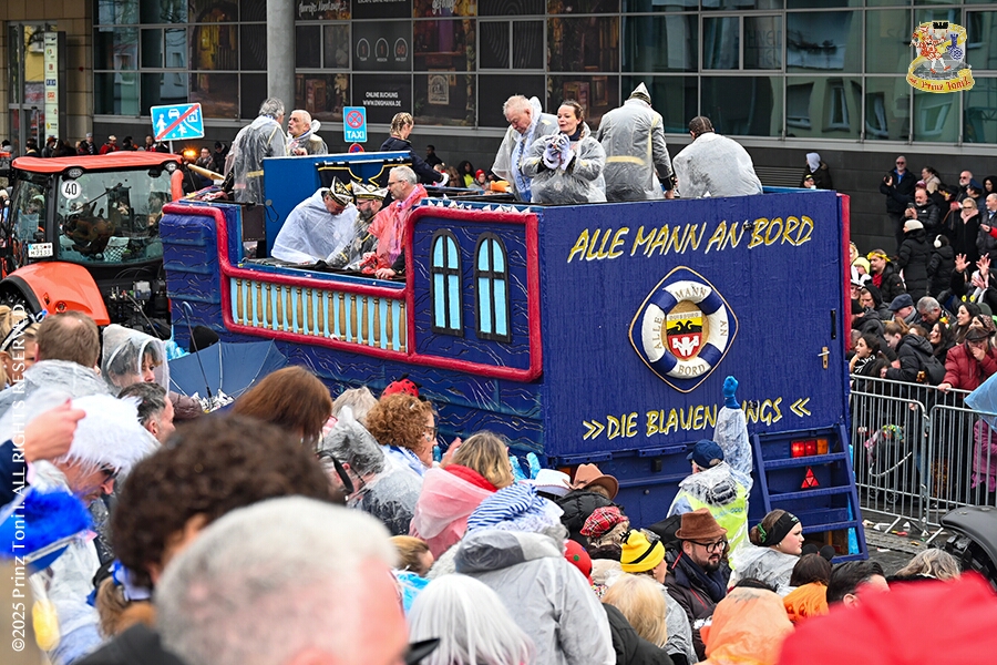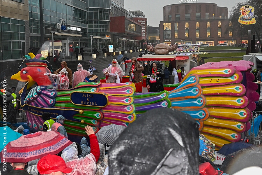 50 Rosenmontag 2026 - Es war eigentlich ein toller Tag, wenn nur das Wetter mitgespielt hätte. Beim Wecken von Prinz Toni I. vor dem WYNDHAM Hotel Duisburger Hof war es schon recht ungemütlich. Danach dann ein paar warme Stunden in unserem Rat, beim Prinzenwecken mit OB Sören Link. Pünktlich zum Start des Rosenmontagszugs geht es los mit dem Regen, bis auf kurze Momente hielt er an bis zum Ende des Zuges. Nachdem sich Alle im König Pilsener Festzelt auf gewärmt hatten, kamen auf der Bühne die Verabschiedung von uns, der Kinderprinzencrew 2026, und Prinz Toni I.