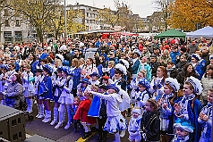 51 Mal draußen, mal drinnen. - Samstagmorgen 16. November Sessionsauftakt vom Hauptausschuss. Traditionell marschierten die HDK-Gesellschaften über die Königstraße zum Burgplatz. Auf der Bühne vor dem Rathaus weckten die Narren den Hoppeditz und leiten mit eine abwechslungsreichen Programm die 5. Jahreszeit ein. Abends dann noch zur KG Alle Mann an Bord. Auftaktzitzung in der Aula vom R.-u.-M.-Mannesmann-Gymnasium.