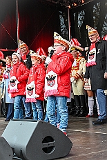 23 Mal draußen, mal drinnen. - Samstagmorgen 16. November Sessionsauftakt vom Hauptausschuss. Traditionell marschierten die HDK-Gesellschaften über die Königstraße zum Burgplatz. Auf der Bühne vor dem Rathaus weckten die Narren den Hoppeditz und leiten mit eine abwechslungsreichen Programm die 5. Jahreszeit ein. Abends dann noch zur KG Alle Mann an Bord. Auftaktzitzung in der Aula vom R.-u.-M.-Mannesmann-Gymnasium.