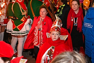 20 Einzug in die Hofburg - Ein kühler Freitag Abend erwartet uns vor der Tür des IntercitsHotel bei der Begrüßung der anwesenden Gesellschaften und der Fahnenhissung se. Tollität Prinz Holger 2ten. Danach zog die Prinzencrew 2025 in ihre „Hofburg“.