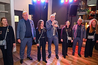 23 Einzug in die Hofburg - Ein kühler Freitag Abend erwartet uns vor der Tür des IntercitsHotel bei der Begrüßung der anwesenden Gesellschaften und der Fahnenhissung se. Tollität Prinz Holger 2ten. Danach zog die Prinzencrew 2025 in ihre „Hofburg“.