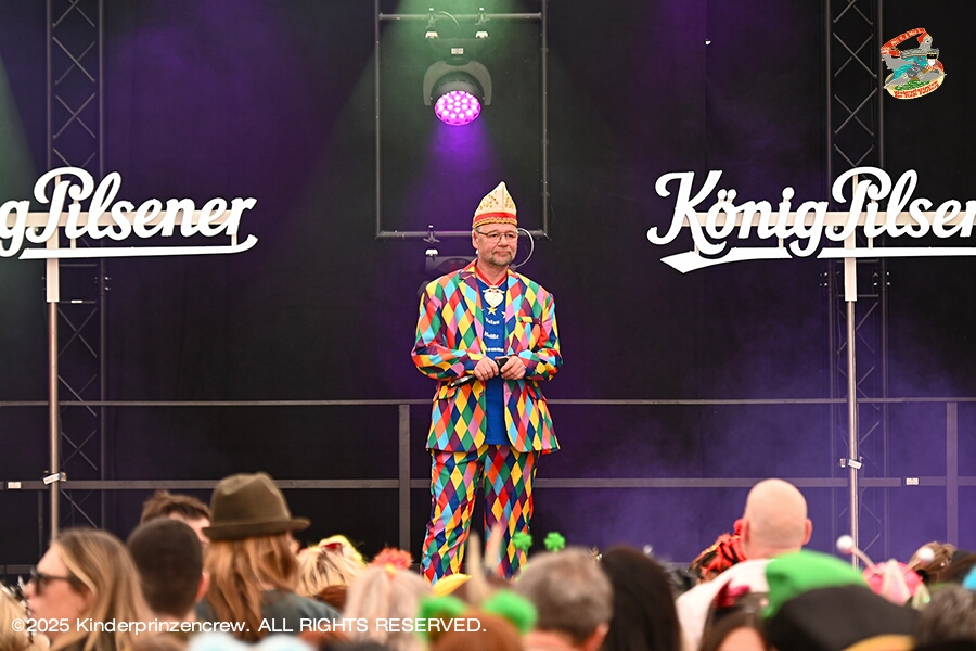 100 Weiberfastnacht 2025 - ein Ausschnitt - Es beginnt mit dem Rathaussturm im Festzelt des HDK auf dem Festplatz „Am Güterbahnhof“. Pure Party-Stimmung im vollen Zelt um 11:11 Uhr. Der Tag ist voller Termine, einer davon ist am späten Nachmittag bei der 1. KG Baerl, bei „Freya“, mit der deren Altweiber-Party. Diese gibt es dann auch zwei Termin weiter, der letzte Termin dann im Süden bei der KG Alle Mann an Bord den „Blauen Jungs“. Auch hier wie überall an diesem Tag ein volles Haus.