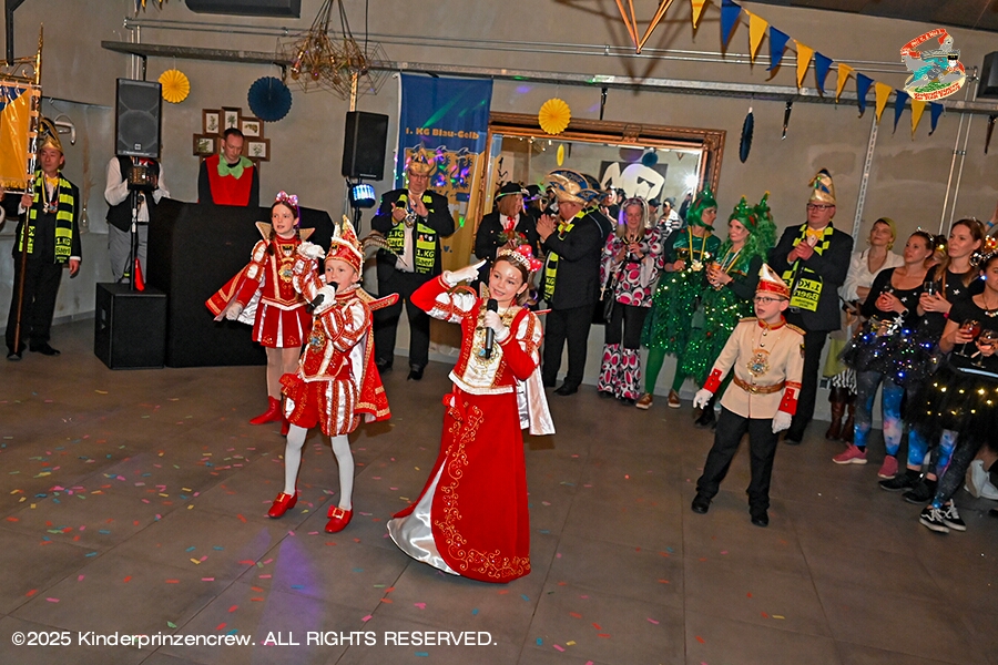 38 Weiberfastnacht 2025 - ein Ausschnitt - Es beginnt mit dem Rathaussturm im Festzelt des HDK auf dem Festplatz „Am Güterbahnhof“. Pure Party-Stimmung im vollen Zelt um 11:11 Uhr. Der Tag ist voller Termine, einer davon ist am späten Nachmittag bei der 1. KG Baerl, bei „Freya“, mit der deren Altweiber-Party. Diese gibt es dann auch zwei Termin weiter, der letzte Termin dann im Süden bei der KG Alle Mann an Bord den „Blauen Jungs“. Auch hier wie überall an diesem Tag ein volles Haus.