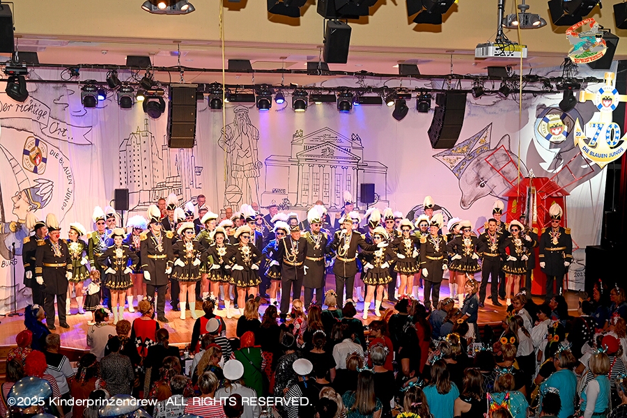 80 Weiberfastnacht 2025 - ein Ausschnitt - Es beginnt mit dem Rathaussturm im Festzelt des HDK auf dem Festplatz „Am Güterbahnhof“. Pure Party-Stimmung im vollen Zelt um 11:11 Uhr. Der Tag ist voller Termine, einer davon ist am späten Nachmittag bei der 1. KG Baerl, bei „Freya“, mit der deren Altweiber-Party. Diese gibt es dann auch zwei Termin weiter, der letzte Termin dann im Süden bei der KG Alle Mann an Bord den „Blauen Jungs“. Auch hier wie überall an diesem Tag ein volles Haus.