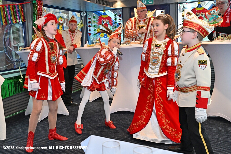 4 Prinzenfahrt auf der Karl Jarres - Die Prinzenfahrt auf dem duisport-Schiff ist ein Höhepunkt in jeder Session! Pünktlich um 11:11 Uhr hieß es „Leinen los". Zusammen mit duisport-Vorstand Markus Bangen und Giordana Sperling-Doppstadt sowie Vertretern des HDK. Auch Vertreter aus Duisburgs Karnevalsgesellschaften waren an Bord und es ging volle Kraft voraus über den Rhein.