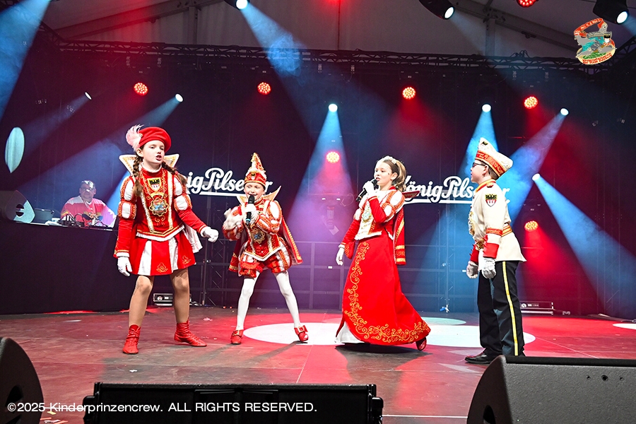 100 Unser Rosenmontag 2025 - Nicht ganz so früh wie wir wird Prinz Holger II. geweckt, mit Böllerschüssen die vor dem IntercityHotel über den Bahnhofsvorplatz donnern. Danach geht es dann zum Prinzenfrühstück zum OB Sören Link ins Rathaus. Mit einer Stunde Verspätung rollt der Rosenmontagszug um 14:11 Uhr dann endlich los. Mit einem riesiger Jubelsturm empfängt uns das Publikum auf dem Opernplatz. Dann kommt die After-Zug-Party. Ein letztes Mal machen wir unser Programm. Jetzt kommt der Zeitpunkt unserer Verabschiedung, nochmal Jubel und dann ist Schluß.