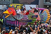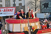 Nicht ganz so früh wie wir wird Prinz Holger II. geweckt, mit Böllerschüssen die vor dem IntercityHotel über den Bahnhofsvorplatz donnern. Danach geht es dann zum Prinzenfrühstück zum OB Sören Link ins Rathaus. Mit einer Stunde Verspätung rollt der Rosenmontagszug um 14:11 Uhr dann endlich los. Mit einem riesiger Jubelsturm empfängt uns das Publikum auf dem Opernplatz. Dann kommt die After-Zug-Party. Ein letztes Mal machen wir unser Programm. Jetzt kommt der Zeitpunkt unserer Verabschiedung, nochmal Jubel und dann ist Schluß.