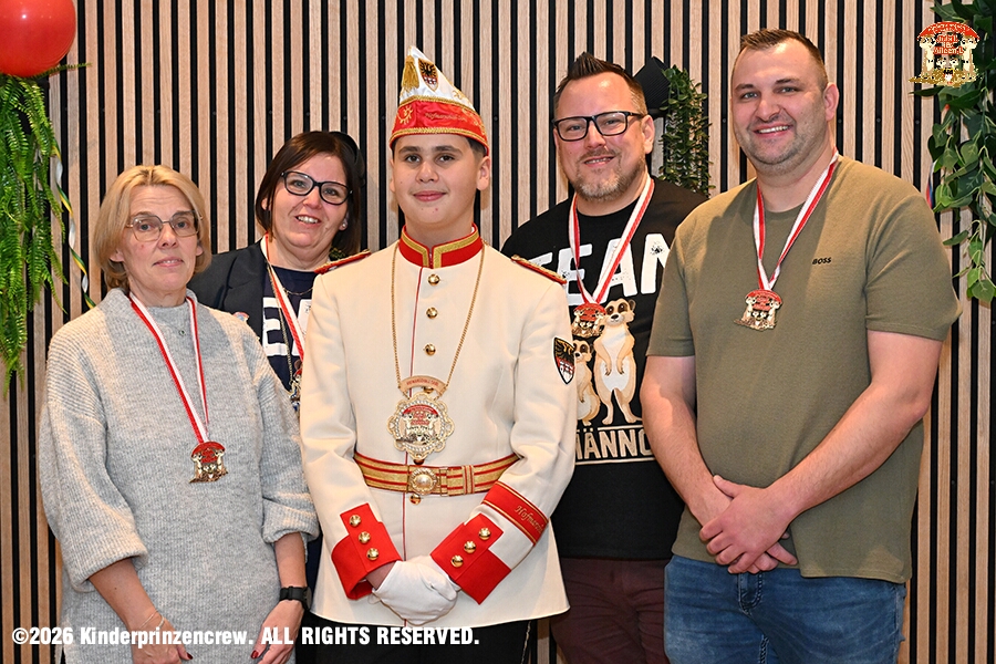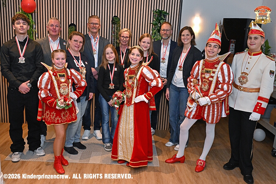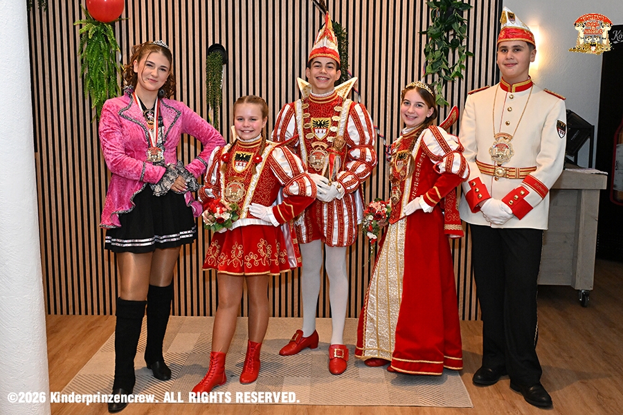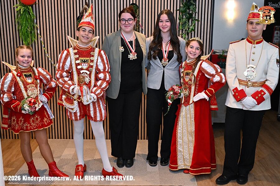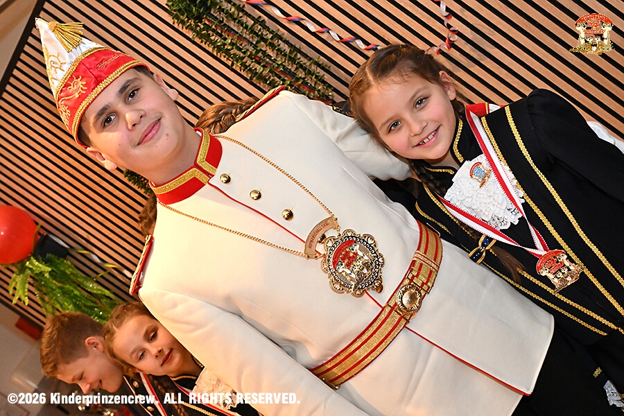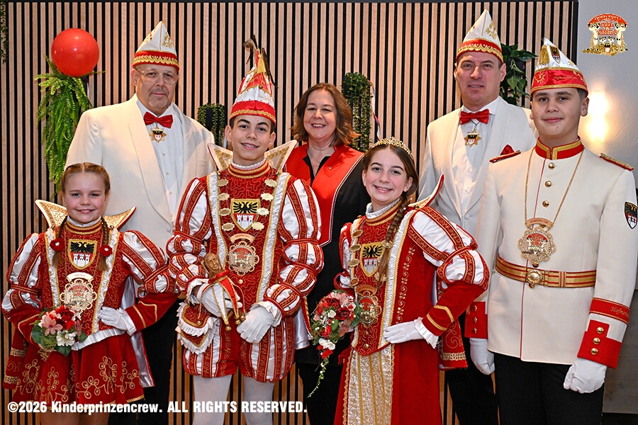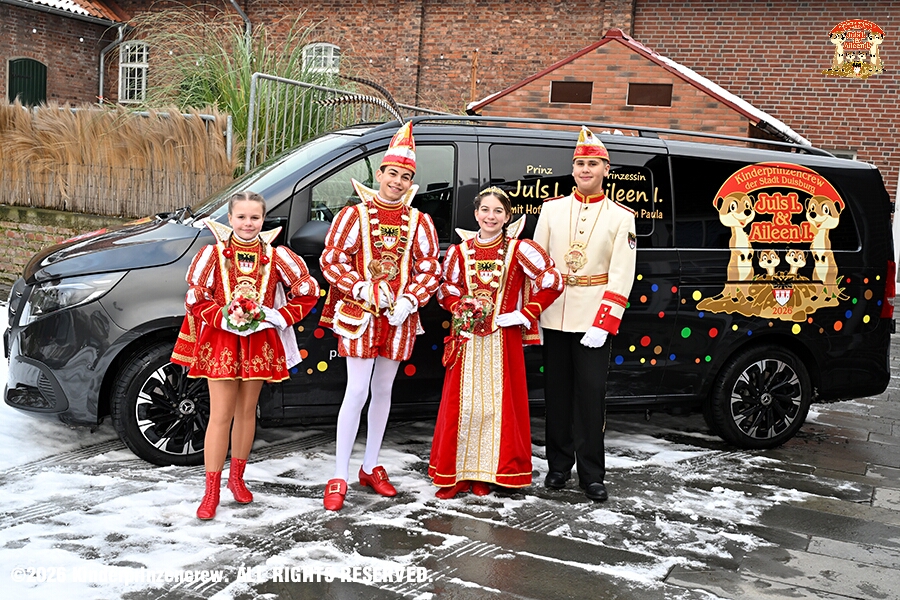 100 Unsere Kürung - Premiere - Im so genannten „Gürzenich“ von Duisburg, dem Steinhof in Huckingen fand am Sonntag, 4. Januar 2026, zum ersten Mal die Kürung einer Kinderprinzencrew statt. Wir sind nun als Prinz Juls I., Prinzessin Aileen I. mit Hofmarschall Sami und Pagin Paula der Stadt Duisburg 2026 inthronisiert.