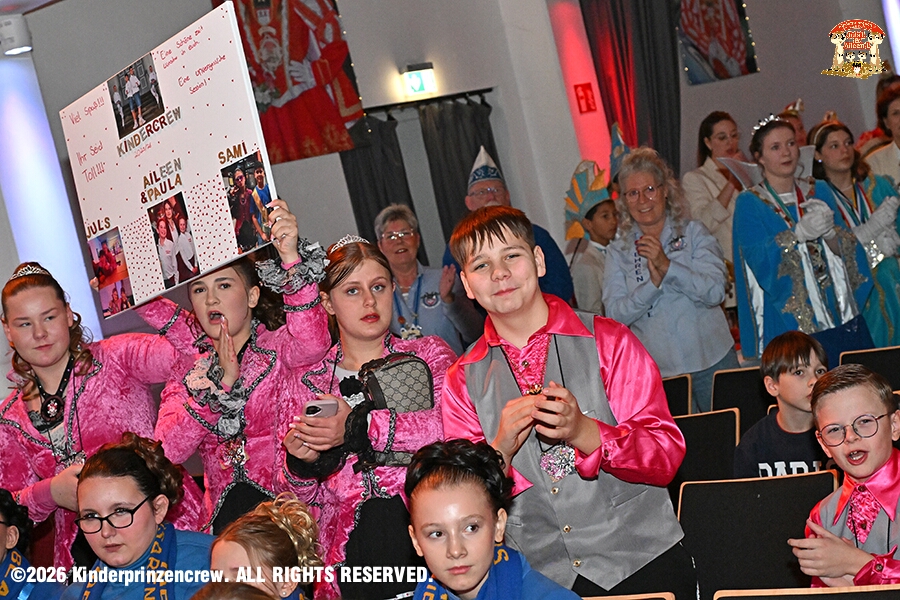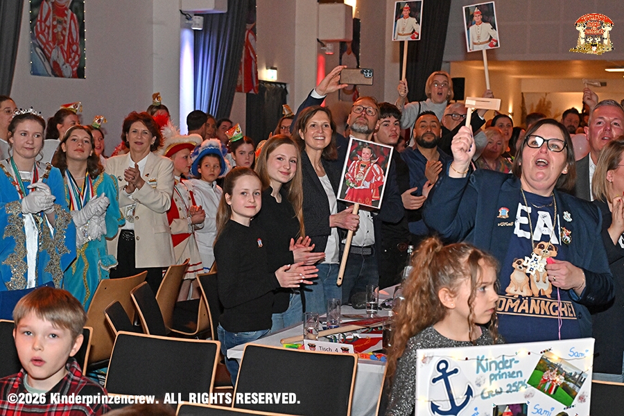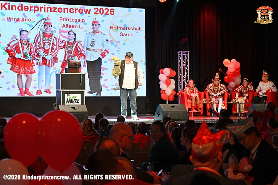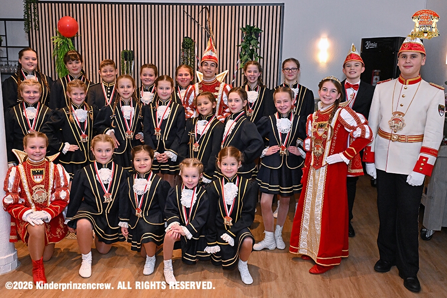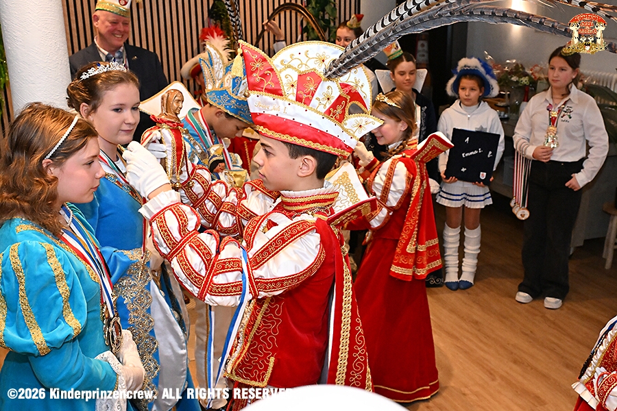 69 Unsere Kürung - Premiere - Im so genannten „Gürzenich“ von Duisburg, dem Steinhof in Huckingen fand am Sonntag, 4. Januar 2026, zum ersten Mal die Kürung einer Kinderprinzencrew statt. Wir sind nun als Prinz Juls I., Prinzessin Aileen I. mit Hofmarschall Sami und Pagin Paula der Stadt Duisburg 2026 inthronisiert.
