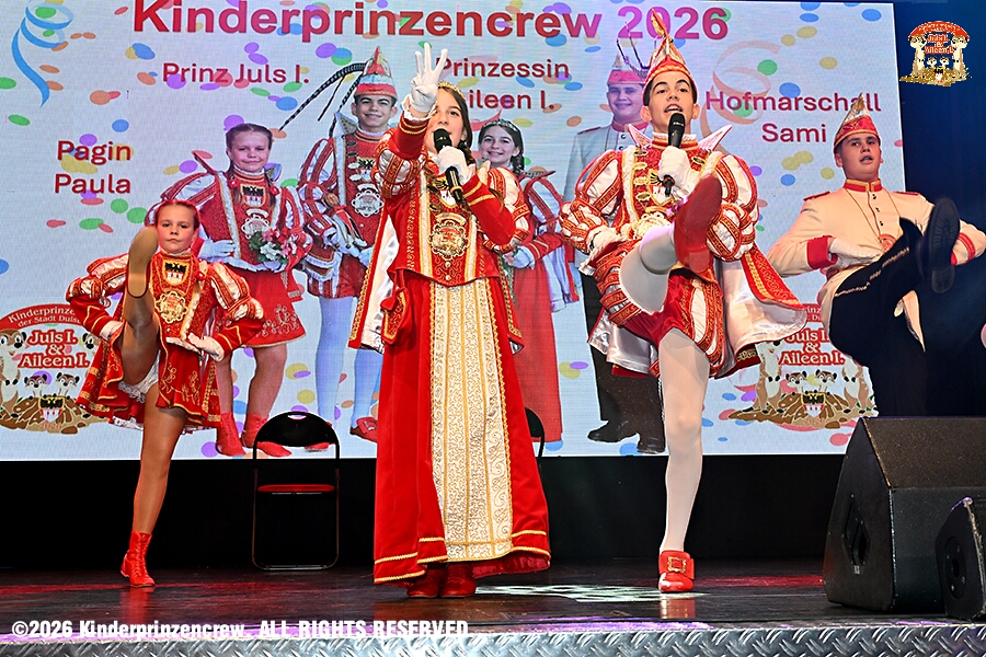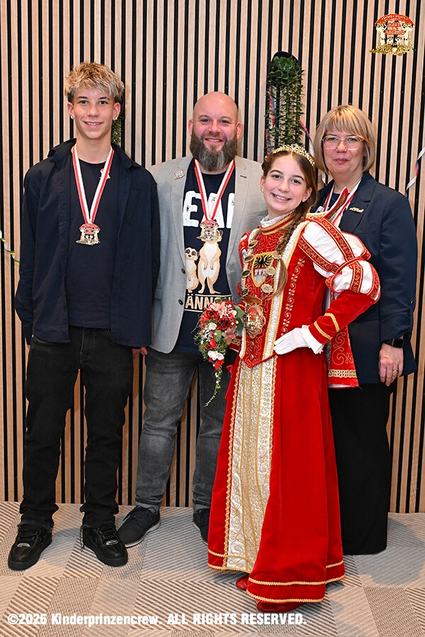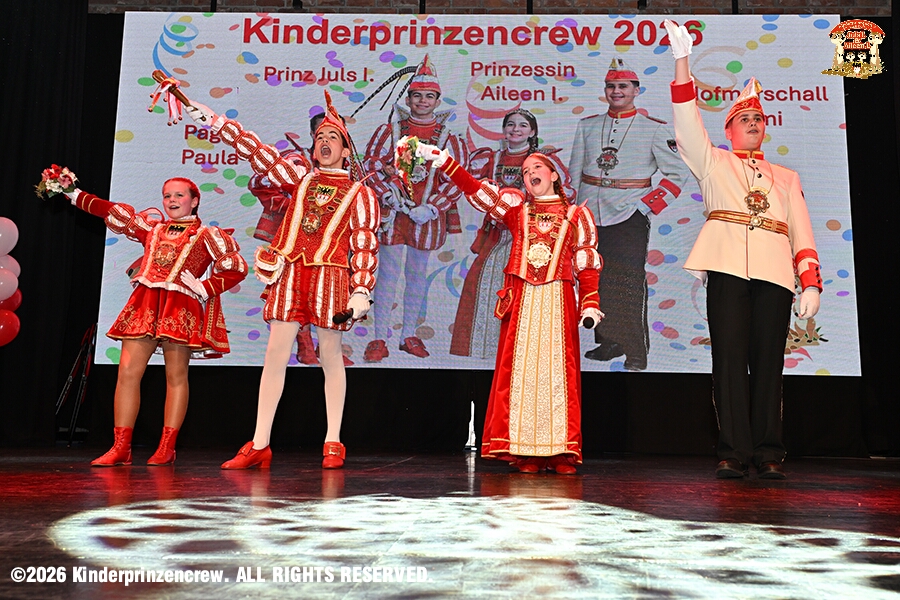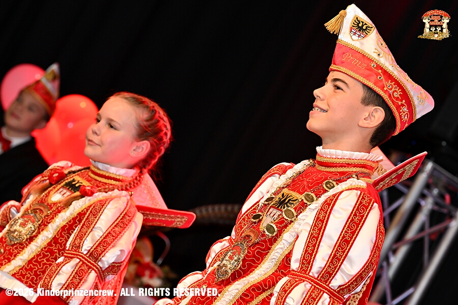 40 Unsere Kürung - Premiere - Im so genannten „Gürzenich“ von Duisburg, dem Steinhof in Huckingen fand am Sonntag, 4. Januar 2026, zum ersten Mal die Kürung einer Kinderprinzencrew statt. Wir sind nun als Prinz Juls I., Prinzessin Aileen I. mit Hofmarschall Sami und Pagin Paula der Stadt Duisburg 2026 inthronisiert.