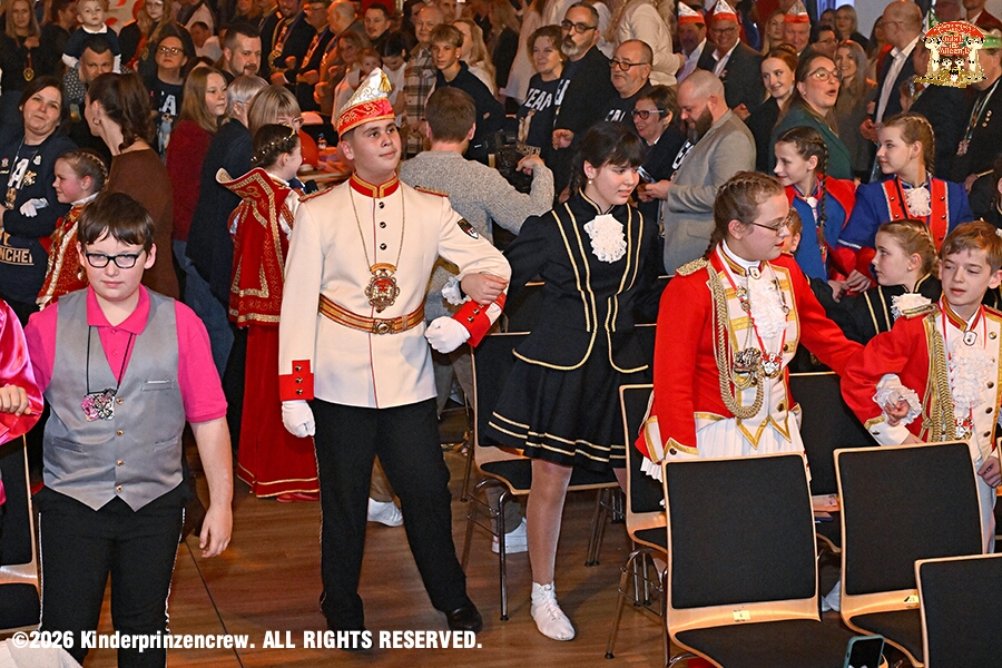 121 Unsere Kürung - Premiere - Im so genannten „Gürzenich“ von Duisburg, dem Steinhof in Huckingen fand am Sonntag, 4. Januar 2026, zum ersten Mal die Kürung einer Kinderprinzencrew statt. Wir sind nun als Prinz Juls I., Prinzessin Aileen I. mit Hofmarschall Sami und Pagin Paula der Stadt Duisburg 2026 inthronisiert.