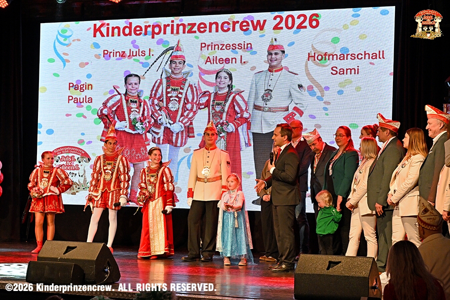120 Unsere Kürung - Premiere - Im so genannten „Gürzenich“ von Duisburg, dem Steinhof in Huckingen fand am Sonntag, 4. Januar 2026, zum ersten Mal die Kürung einer Kinderprinzencrew statt. Wir sind nun als Prinz Juls I., Prinzessin Aileen I. mit Hofmarschall Sami und Pagin Paula der Stadt Duisburg 2026 inthronisiert.