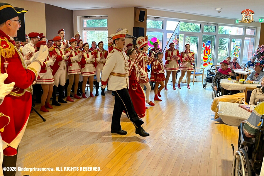 Mittags begann unsere Tour, insgesamt 7 Auftritte, im Hewag Seniorenstift an der Karl-Jarres-Straße. Es folgte dann im Karl Martin Haus bei den Jungschützen, begleitet von unserer Minigarde, der nächste Termin. Nach sportlichen Stop dann beim OSC in Rheinhausen ging es zur Mädchensitzung von Rot-Weiß Hamborn-Marxloh. Von dort in die City, einmal zur die Galasitzung der Bürgergarde im WYNDHAM Hotel und dann die Damensitzung vom Sonnigen Süden. Zum Schluss war dann noch das Kostümfest der „Hippen“ in Großenbaum.