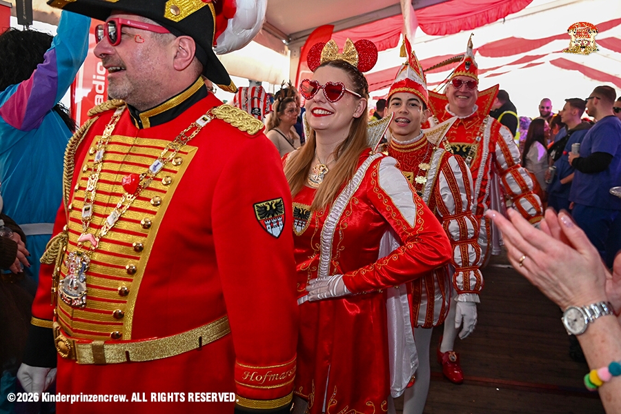 26 Weiberfastnachts Tour, 11. Februar - Schon um 9 Uhr begann dieser ereignisreicher Tag für uns mit der Karnevalsfeier in der GGS Habichtstraße. Im HDK Festzelt wurden wir danach fanatisch gefeiert. Weiter ging es dann zu Hargreaves und ins LANUV zur der Firmenfeiern. Zwischendurch seine Seniorenfeier der AWO Karl-Jarres-Straße. Im Ratskeller feiern die Nordvereine Altweiber. In Folge fahren wir nach Laar, einmal zum Familienkarneval der KG Rot-Gold und die KFD feier im St. Ewald. Der vorletzte Auftritt dann die Altweibersitzung bei der Ehrengarde bevor es zum erneuten Heimspiel zur Altweiber-Party in den Heimathafen geht.