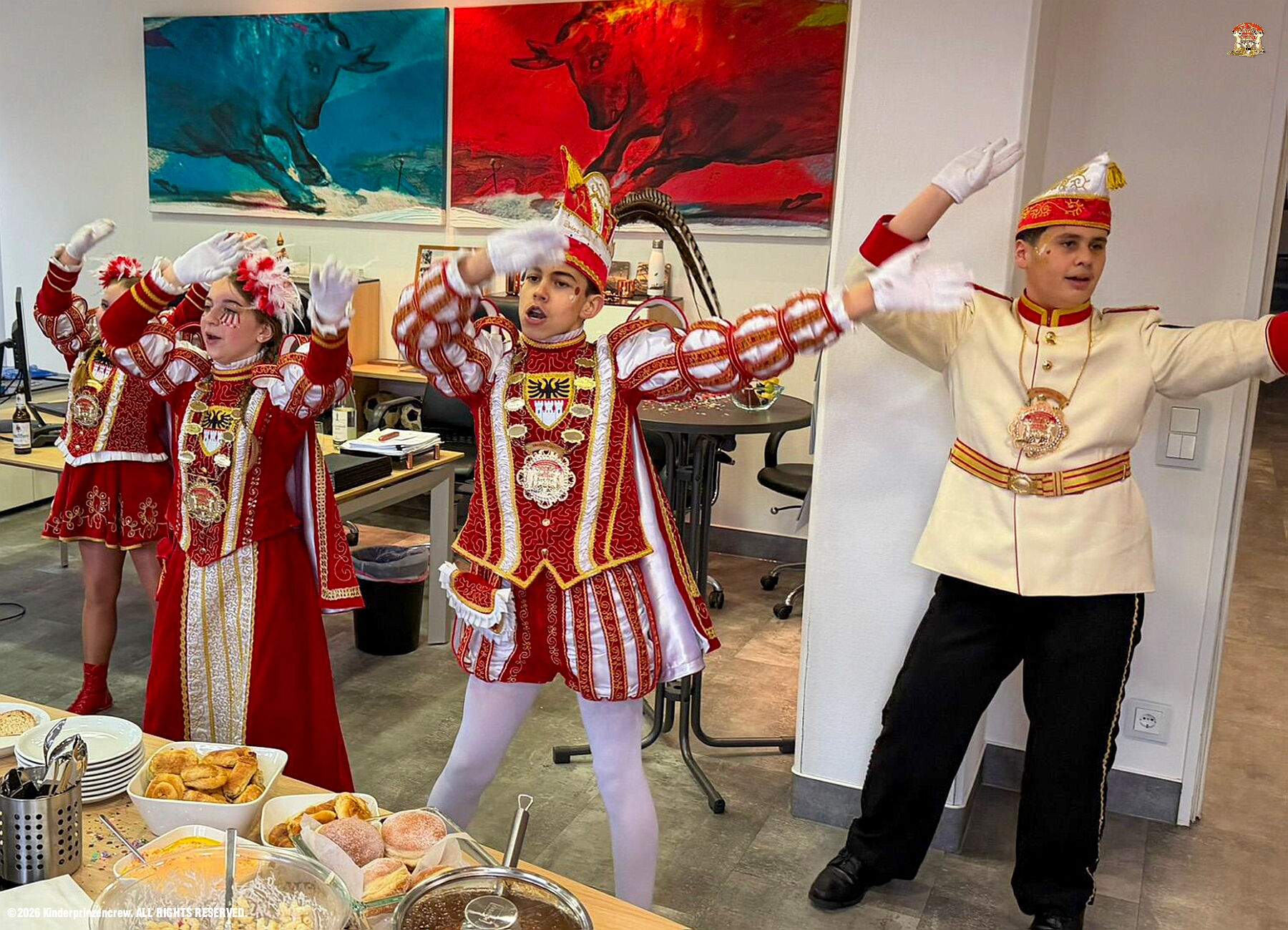 12 Weiberfastnachts Tour, 11. Februar - Schon um 9 Uhr begann dieser ereignisreicher Tag für uns mit der Karnevalsfeier in der GGS Habichtstraße. Im HDK Festzelt wurden wir danach fanatisch gefeiert. Weiter ging es dann zu Hargreaves und ins LANUV zur der Firmenfeiern. Zwischendurch seine Seniorenfeier der AWO Karl-Jarres-Straße. Im Ratskeller feiern die Nordvereine Altweiber. In Folge fahren wir nach Laar, einmal zum Familienkarneval der KG Rot-Gold und die KFD feier im St. Ewald. Der vorletzte Auftritt dann die Altweibersitzung bei der Ehrengarde bevor es zum erneuten Heimspiel zur Altweiber-Party in den Heimathafen geht.