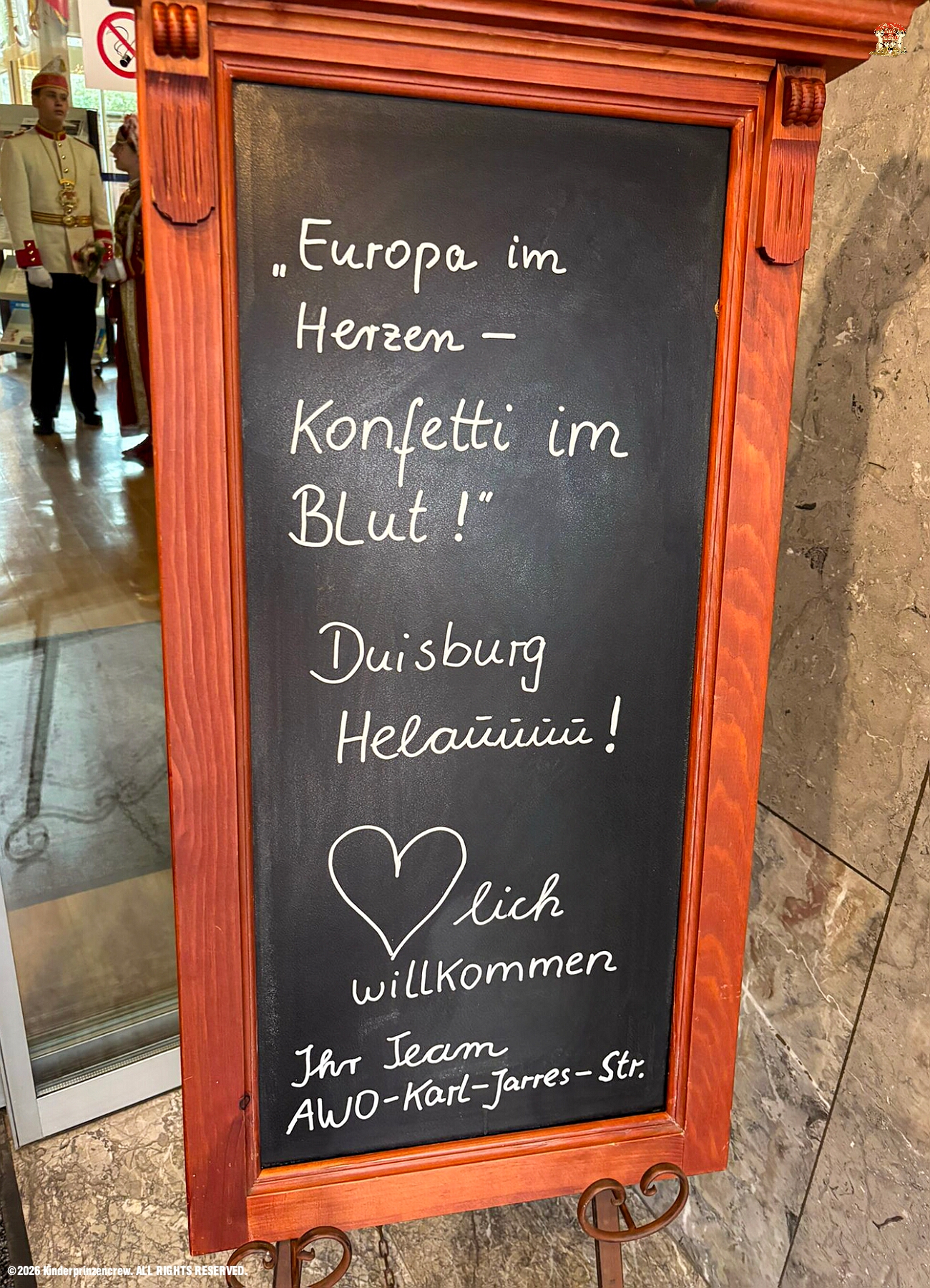 116 Weiberfastnachts Tour, 11. Februar - Schon um 9 Uhr begann dieser ereignisreicher Tag für uns mit der Karnevalsfeier in der GGS Habichtstraße. Im HDK Festzelt wurden wir danach fanatisch gefeiert. Weiter ging es dann zu Hargreaves und ins LANUV zur der Firmenfeiern. Zwischendurch seine Seniorenfeier der AWO Karl-Jarres-Straße. Im Ratskeller feiern die Nordvereine Altweiber. In Folge fahren wir nach Laar, einmal zum Familienkarneval der KG Rot-Gold und die KFD feier im St. Ewald. Der vorletzte Auftritt dann die Altweibersitzung bei der Ehrengarde bevor es zum erneuten Heimspiel zur Altweiber-Party in den Heimathafen geht.