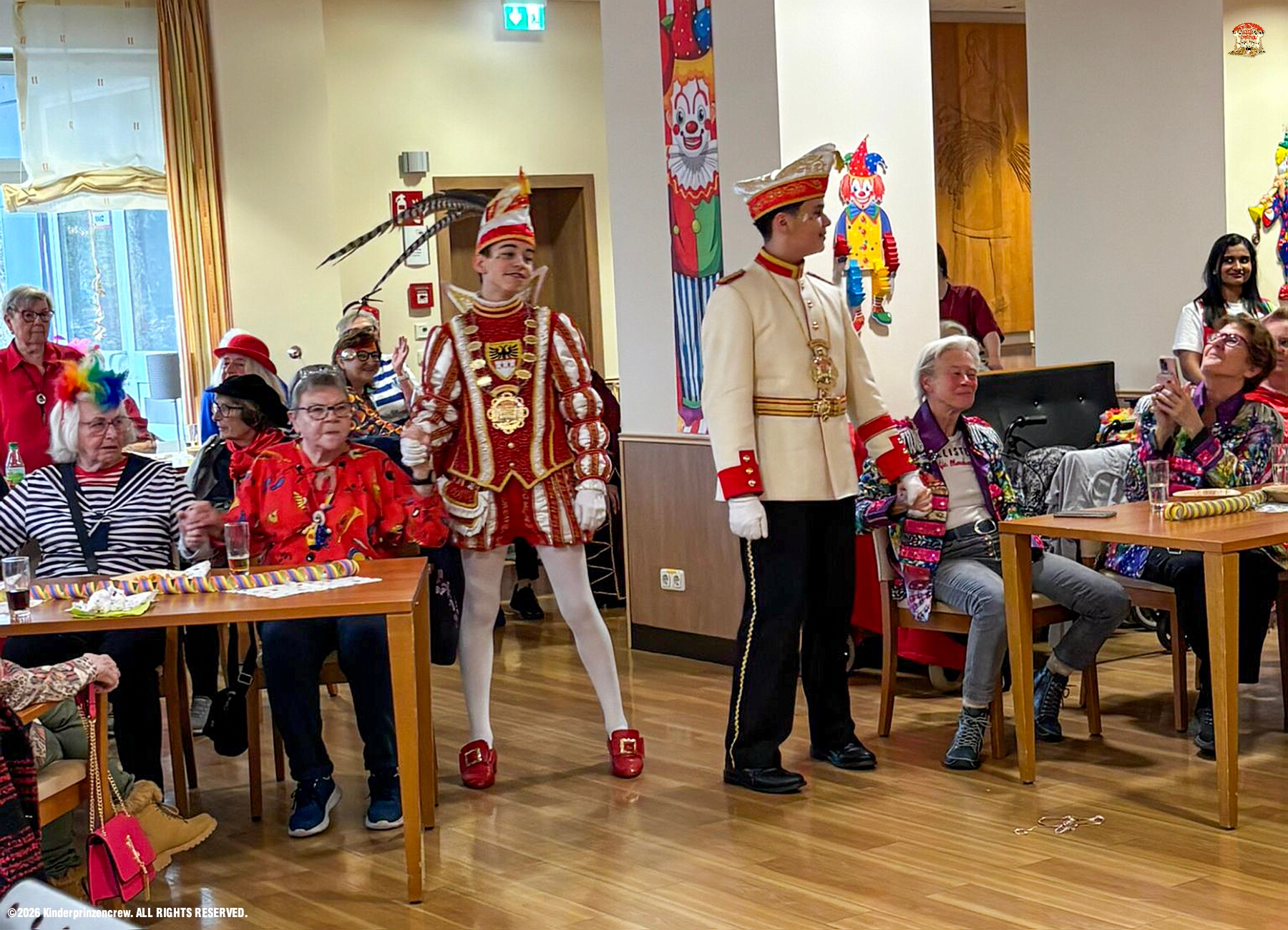 27 Weiberfastnachts Tour, 11. Februar - Schon um 9 Uhr begann dieser ereignisreicher Tag für uns mit der Karnevalsfeier in der GGS Habichtstraße. Im HDK Festzelt wurden wir danach fanatisch gefeiert. Weiter ging es dann zu Hargreaves und ins LANUV zur der Firmenfeiern. Zwischendurch seine Seniorenfeier der AWO Karl-Jarres-Straße. Im Ratskeller feiern die Nordvereine Altweiber. In Folge fahren wir nach Laar, einmal zum Familienkarneval der KG Rot-Gold und die KFD feier im St. Ewald. Der vorletzte Auftritt dann die Altweibersitzung bei der Ehrengarde bevor es zum erneuten Heimspiel zur Altweiber-Party in den Heimathafen geht.