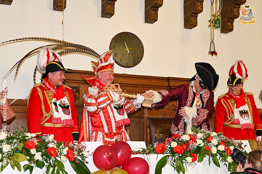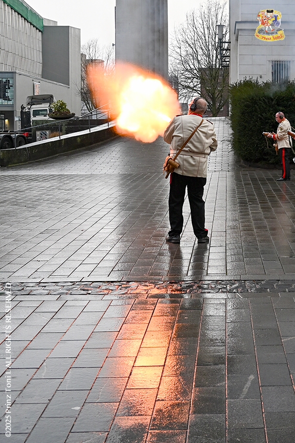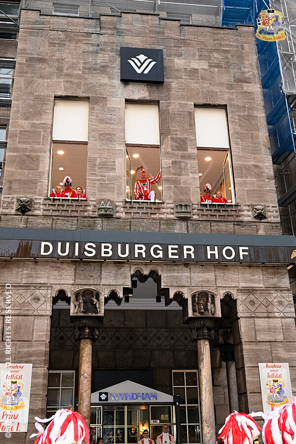 24 Rosenmontag 2026 - Es war eigentlich ein toller Tag, wenn nur das Wetter mitgespielt hätte. Beim Wecken von Prinz Toni I. vor dem WYNDHAM Hotel Duisburger Hof war es schon recht ungemütlich. Danach dann ein paar warme Stunden in unserem Rat, beim Prinzenwecken mit OB Sören Link. Pünktlich zum Start des Rosenmontagszugs geht es los mit dem Regen, bis auf kurze Momente hielt er an bis zum Ende des Zuges. Nachdem sich Alle im König Pilsener Festzelt auf gewärmt hatten, kamen auf der Bühne die Verabschiedung von uns, der Kinderprinzencrew 2026, und Prinz Toni I.