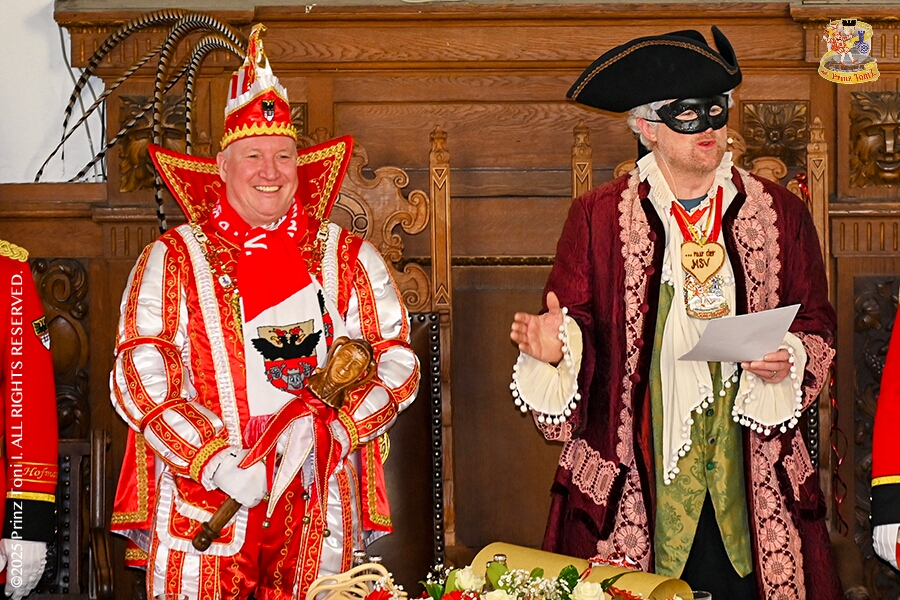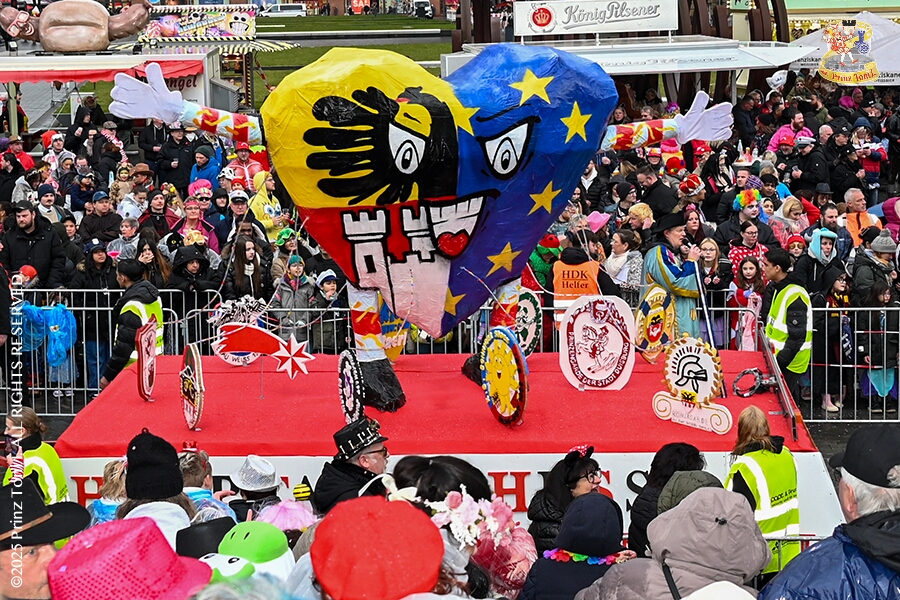 23 Rosenmontag 2026 - Es war eigentlich ein toller Tag, wenn nur das Wetter mitgespielt hätte. Beim Wecken von Prinz Toni I. vor dem WYNDHAM Hotel Duisburger Hof war es schon recht ungemütlich. Danach dann ein paar warme Stunden in unserem Rat, beim Prinzenwecken mit OB Sören Link. Pünktlich zum Start des Rosenmontagszugs geht es los mit dem Regen, bis auf kurze Momente hielt er an bis zum Ende des Zuges. Nachdem sich Alle im König Pilsener Festzelt auf gewärmt hatten, kamen auf der Bühne die Verabschiedung von uns, der Kinderprinzencrew 2026, und Prinz Toni I.