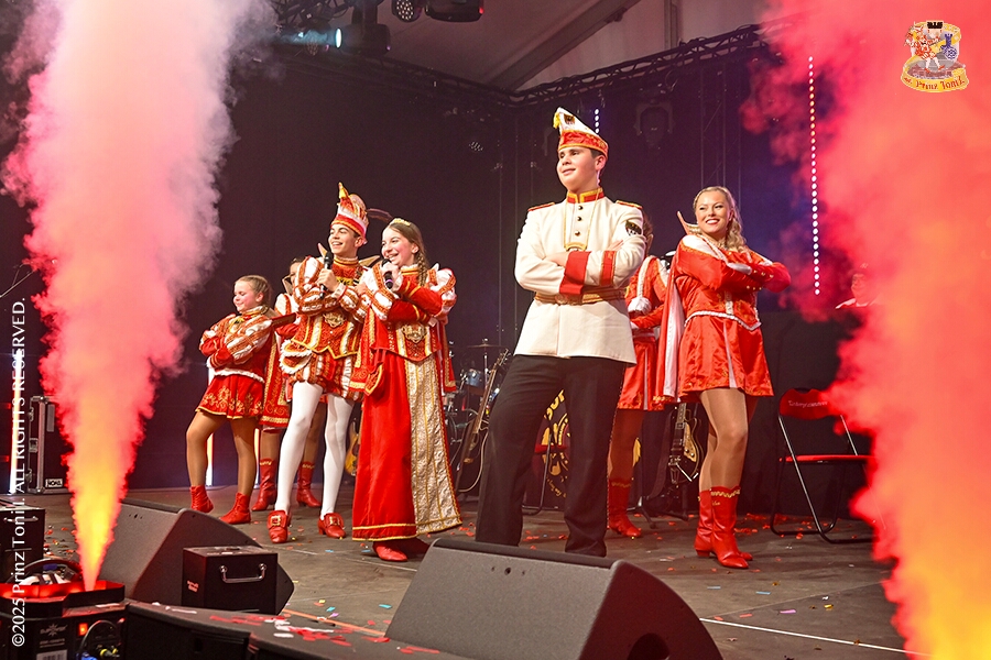 59 KG Rot-Gold Laar im Ewaldi-Haus - Die KG Rot-Gold Laar hatte am 6. Mai zum Frühlingsfest eingeladen. Wir als designierte Kinderprinzencrew 2027 sind gern der Einladung gefolgt. Nach Leckereien vom Grill, sowie Kaffee und Kuchen startete ab ca. 19 Uhr die Frühlingsparty.