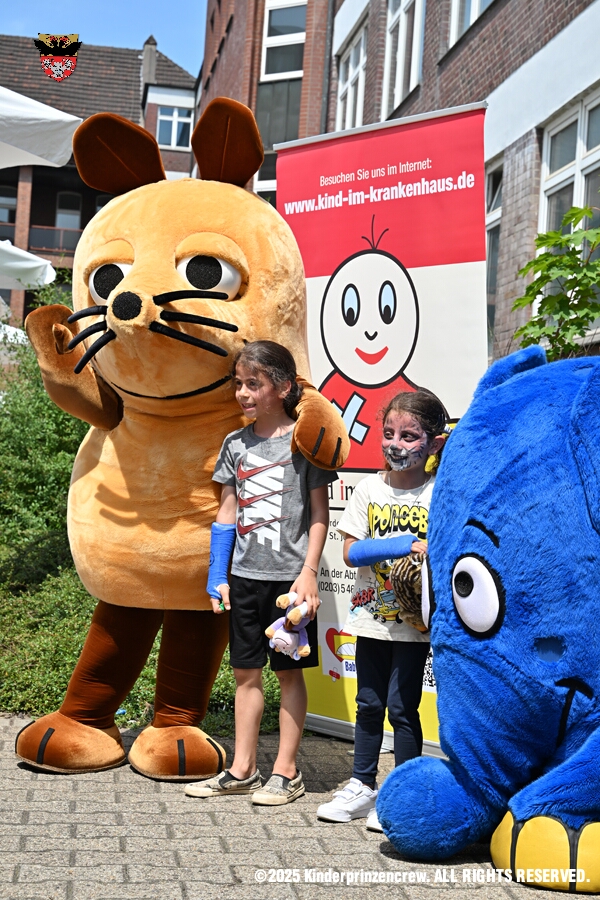 2 Kinderfest & Sommerfest - Unser erstes Ziel war in Hamborn das Helios St. Johannes Klinikum. Ein großes Kinderfest veranstaltete der Förderverein KiK – Kind im Krankenhaus - anlässlich seines 30jährigen Bestehens im Klinikgarten. Der zweite Termin war dann in Bissingheim auf der Sportanlage des ETUS Bissingheim. Wie schon im letzten Jahr fand dort das Sommerfest der KG Schottenzunft Duisburg statt. Zum letzten Termin, Sommerfest der Grafschafter Funken in Moers, wurde es ein wenig feucht von Oben. Aber kein Problem, wir standen unter „Schirmherrschaft“ von Katrin und Jörg.