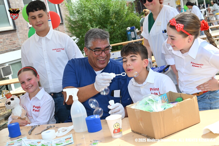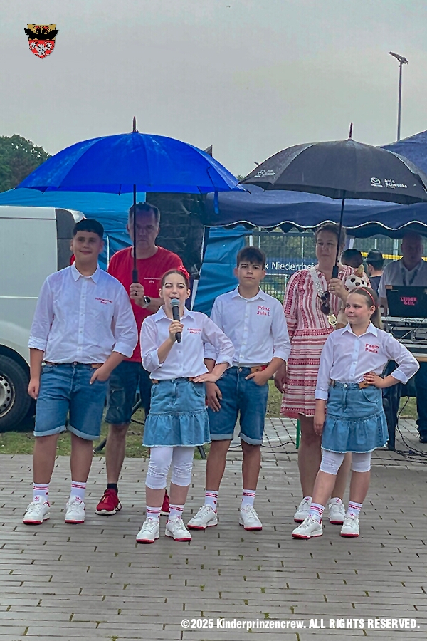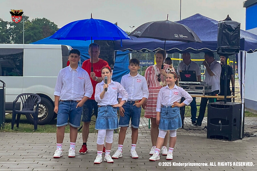 5 Kinderfest & Sommerfest - Unser erstes Ziel war in Hamborn das Helios St. Johannes Klinikum. Ein großes Kinderfest veranstaltete der Förderverein KiK – Kind im Krankenhaus - anlässlich seines 30jährigen Bestehens im Klinikgarten. Der zweite Termin war dann in Bissingheim auf der Sportanlage des ETUS Bissingheim. Wie schon im letzten Jahr fand dort das Sommerfest der KG Schottenzunft Duisburg statt. Zum letzten Termin, Sommerfest der Grafschafter Funken in Moers, wurde es ein wenig feucht von Oben. Aber kein Problem, wir standen unter „Schirmherrschaft“ von Katrin und Jörg.