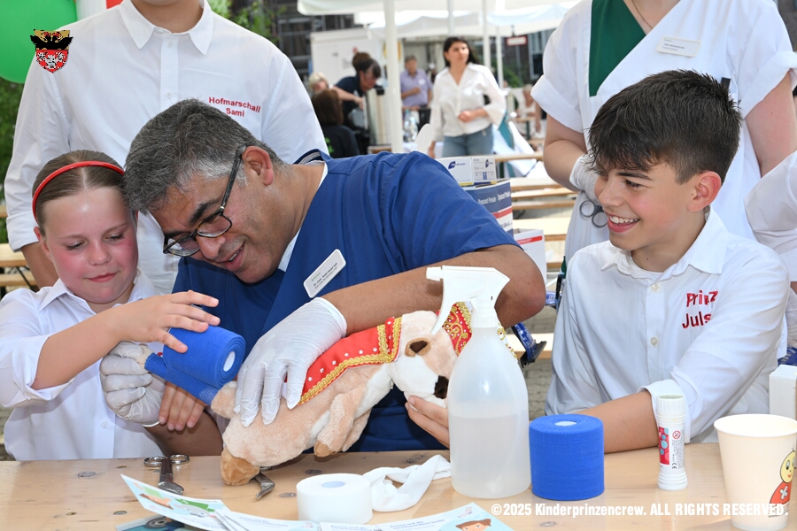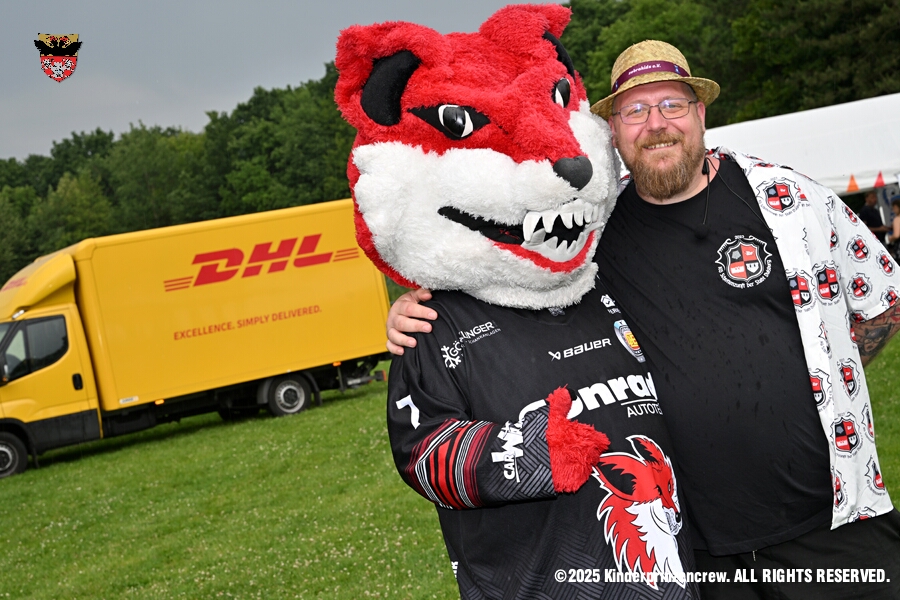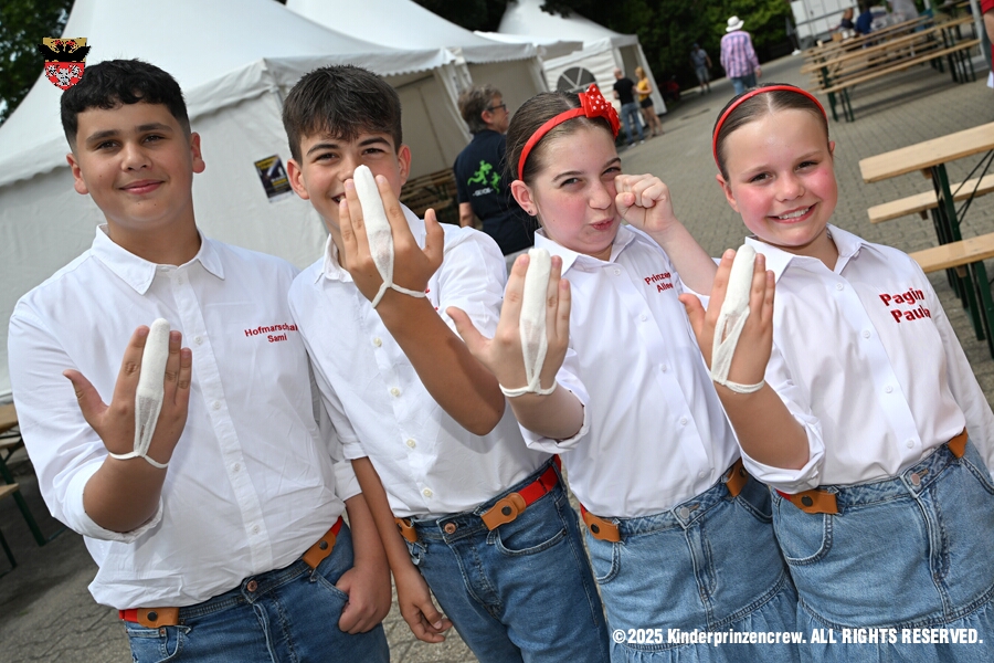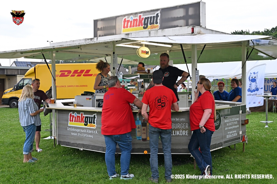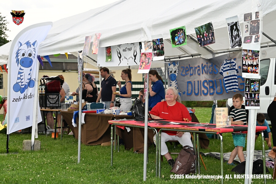24 Kinderfest & Sommerfest - Unser erstes Ziel war in Hamborn das Helios St. Johannes Klinikum. Ein großes Kinderfest veranstaltete der Förderverein KiK – Kind im Krankenhaus - anlässlich seines 30jährigen Bestehens im Klinikgarten. Der zweite Termin war dann in Bissingheim auf der Sportanlage des ETUS Bissingheim. Wie schon im letzten Jahr fand dort das Sommerfest der KG Schottenzunft Duisburg statt. Zum letzten Termin, Sommerfest der Grafschafter Funken in Moers, wurde es ein wenig feucht von Oben. Aber kein Problem, wir standen unter „Schirmherrschaft“ von Katrin und Jörg.