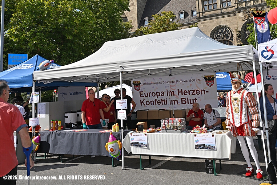 29 Der 6. September - Zwei Termine hatten wir an diesem sommerlichen Samstag. Der Erste war auf dem Burgplatz. Vor dem Rathaus fand der „Tag der Demokratie“ statt. Eine Veranstaltung der Stadt Duisburg, dem HDK unter Mitwirkung angeschlossener Vereinen und diversen Organisationen aus der Stadt. Danach ging es zur Platzanlage des TUS Viktoria 06 in Buchholz zum Benefiz-Spiel gegen die Traditionsmannschaft von Schalke 04.