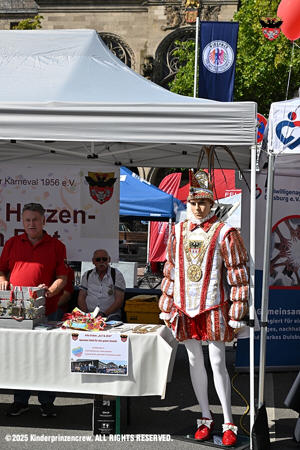 44 Der 6. September - Zwei Termine hatten wir an diesem sommerlichen Samstag. Der Erste war auf dem Burgplatz. Vor dem Rathaus fand der „Tag der Demokratie“ statt. Eine Veranstaltung der Stadt Duisburg, dem HDK unter Mitwirkung angeschlossener Vereinen und diversen Organisationen aus der Stadt. Danach ging es zur Platzanlage des TUS Viktoria 06 in Buchholz zum Benefiz-Spiel gegen die Traditionsmannschaft von Schalke 04.