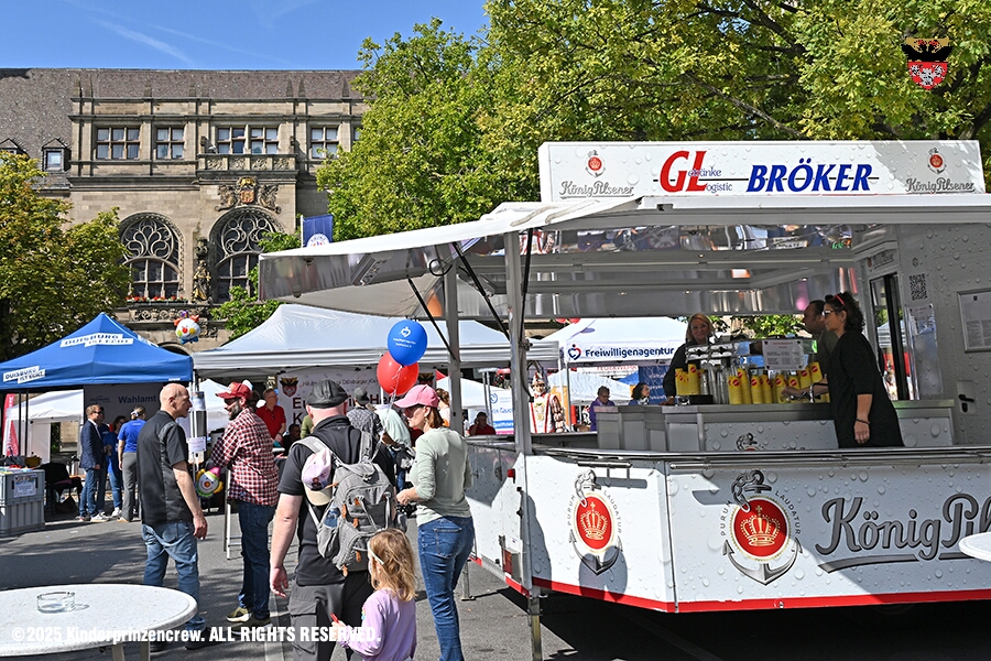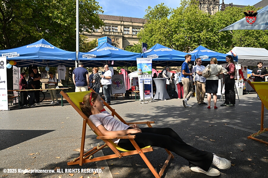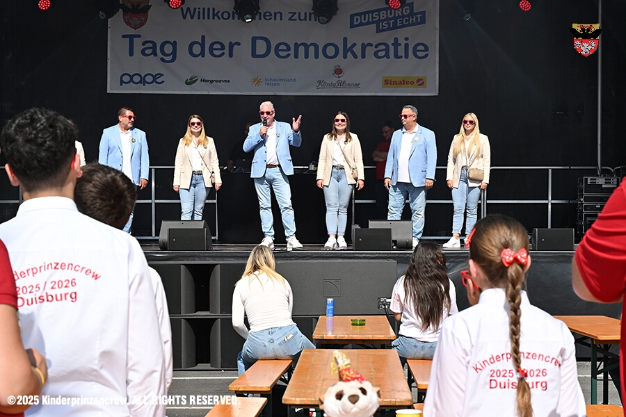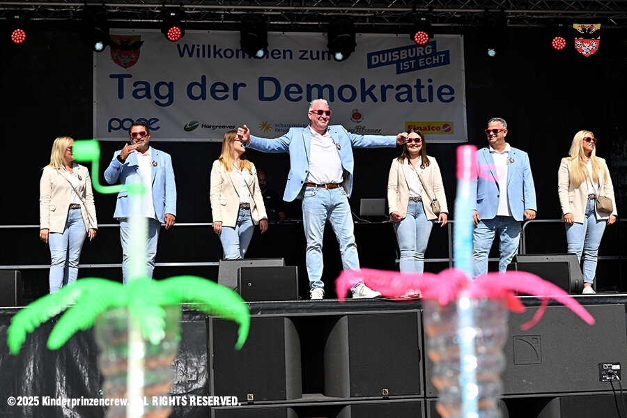 Zwei Termine hatten wir an diesem sommerlichen Samstag. Der Erste war auf dem Burgplatz. Vor dem Rathaus fand der „Tag der Demokratie“ statt. Eine Veranstaltung der Stadt Duisburg, dem HDK unter Mitwirkung angeschlossener Vereinen und diversen Organisationen aus der Stadt. Danach ging es zur Platzanlage des TUS Viktoria 06 in Buchholz zum Benefiz-Spiel gegen die Traditionsmannschaft von Schalke 04.