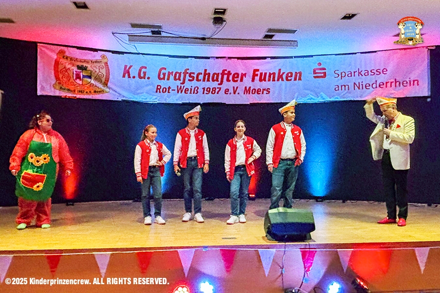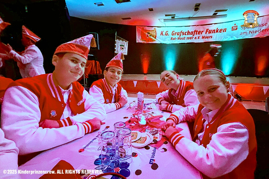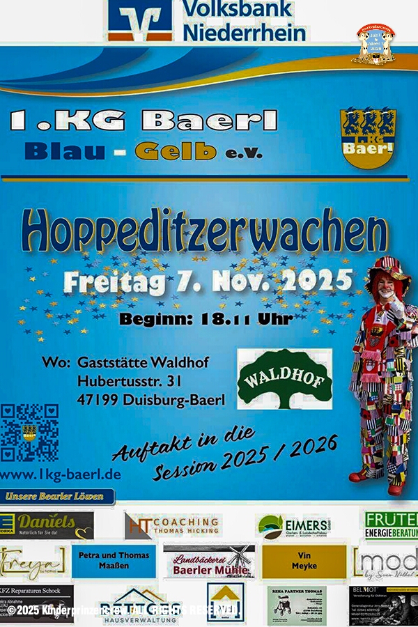 Am Freitagabend, 7. November, für uns vier das erste Hoppeditzerwachen als Kinderprinzencrew wozu wir eingeladen waren. Wir waren bei der 1. KG Baerl Blau-Gelb zu Gast. Ein spätes Hallo dann noch am Abend bei den Grafschafter Funken in Moers.