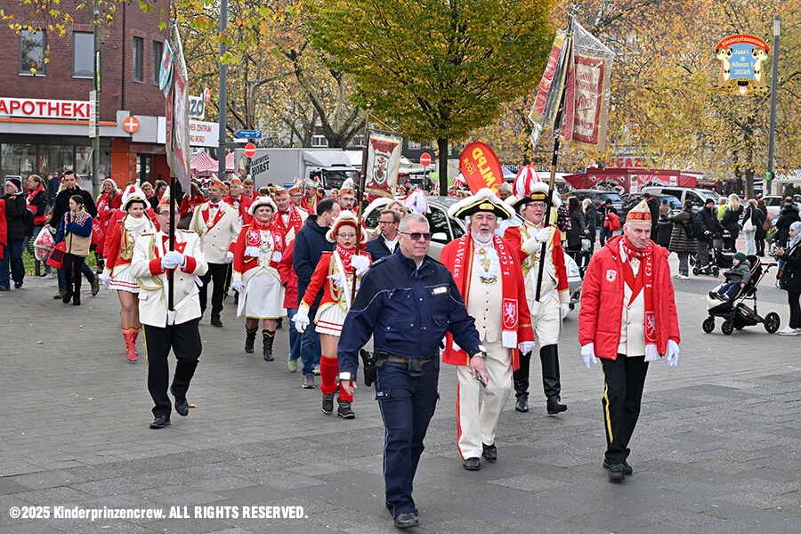 25 Langer Samstag, der 8. November - Am Samstagmorgen stand in der Abteikirche der karnevalistische Gottesdienst in Hamborm an. Mit eine kleinen Umzug ging’ s zum dortigen Rathaus. Karnevalsauftakt der Nordvereine. Am frühen Abend dann in Laar zu Rot-Goldenen KG und später zur Party zum Hoppeditzerwachen bei der KG Sonniger Süden.