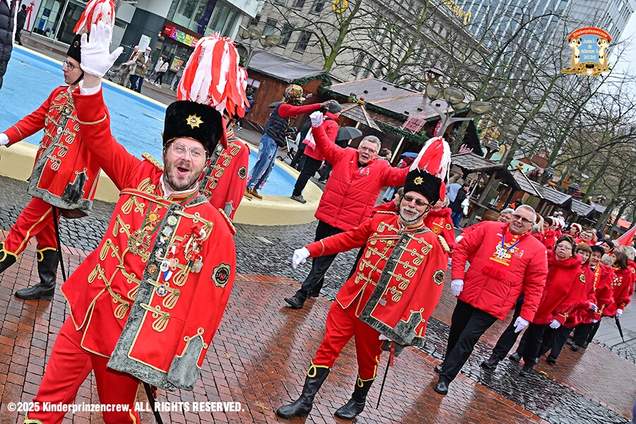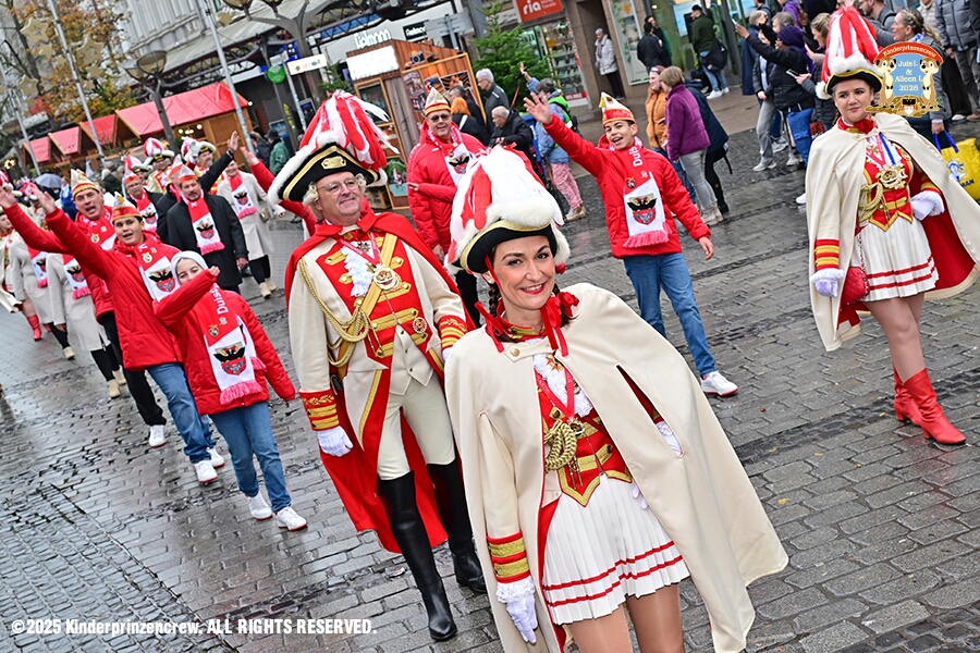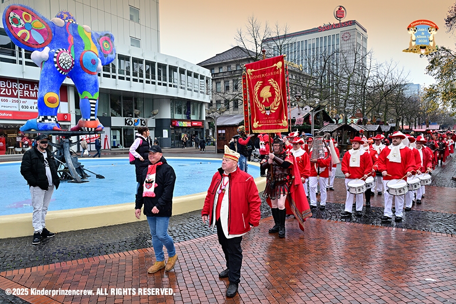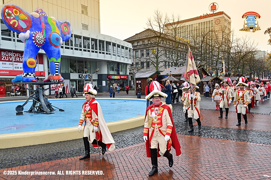 25 Auftakt HDK, Proklamation, Auftaktsitzung - Samstag, 15. November, zogen wir mit den Duisburger Karnevalsgesellschaften vom Forum über die Königsstraße zum Burgplatz. Hier war dann die Auftaktveranstaltung des HDK. Um die Mittagszeit sind es über den Rhein nach Kamp-Lintfort gefahren, dort war in der Stadthalle die Proklamation von der Jugendprinzessin Sophie I. Am frühen Abend dann in die Aula, unsere Aula, vom Reinhard-und-Max-Mannesmann-Gymnasium, zur Auftaktsitzung unseres „Heimathafens“. Mit „stürmischer“ Begeisterung wurden wir dort empfangen.