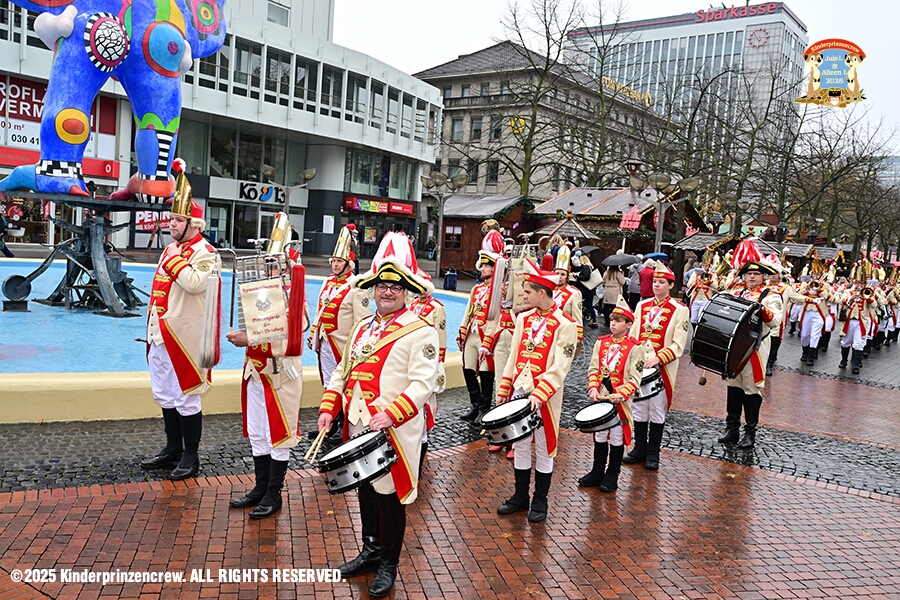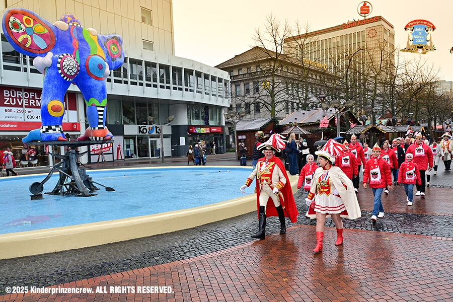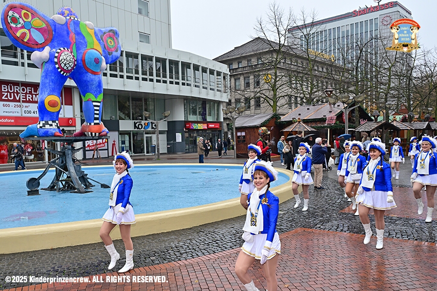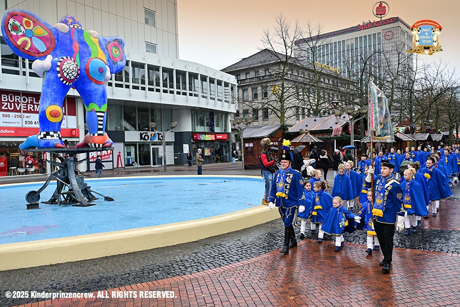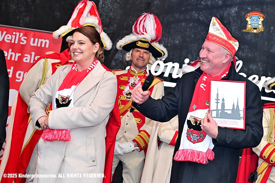 2 Auftakt HDK, Proklamation, Auftaktsitzung - Samstag, 15. November, zogen wir mit den Duisburger Karnevalsgesellschaften vom Forum über die Königsstraße zum Burgplatz. Hier war dann die Auftaktveranstaltung des HDK. Um die Mittagszeit sind es über den Rhein nach Kamp-Lintfort gefahren, dort war in der Stadthalle die Proklamation von der Jugendprinzessin Sophie I. Am frühen Abend dann in die Aula, unsere Aula, vom Reinhard-und-Max-Mannesmann-Gymnasium, zur Auftaktsitzung unseres „Heimathafens“. Mit „stürmischer“ Begeisterung wurden wir dort empfangen.