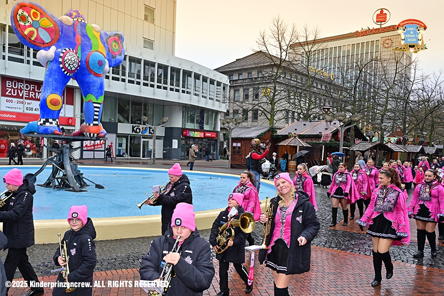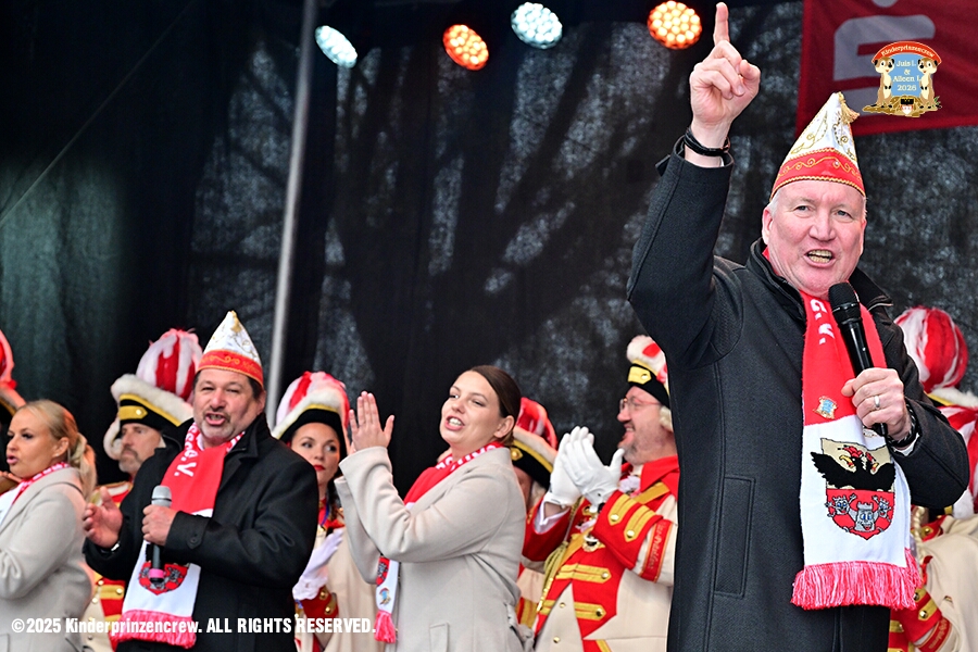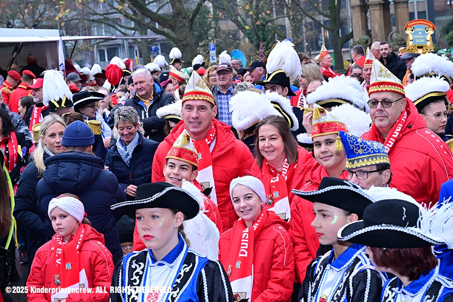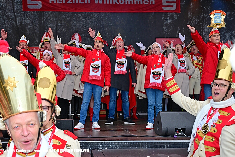 105 Auftakt HDK, Proklamation, Auftaktsitzung - Samstag, 15. November, zogen wir mit den Duisburger Karnevalsgesellschaften vom Forum über die Königsstraße zum Burgplatz. Hier war dann die Auftaktveranstaltung des HDK. Um die Mittagszeit sind es über den Rhein nach Kamp-Lintfort gefahren, dort war in der Stadthalle die Proklamation von der Jugendprinzessin Sophie I. Am frühen Abend dann in die Aula, unsere Aula, vom Reinhard-und-Max-Mannesmann-Gymnasium, zur Auftaktsitzung unseres „Heimathafens“. Mit „stürmischer“ Begeisterung wurden wir dort empfangen.