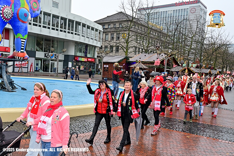 4 Auftakt HDK, Proklamation, Auftaktsitzung - Samstag, 15. November, zogen wir mit den Duisburger Karnevalsgesellschaften vom Forum über die Königsstraße zum Burgplatz. Hier war dann die Auftaktveranstaltung des HDK. Um die Mittagszeit sind es über den Rhein nach Kamp-Lintfort gefahren, dort war in der Stadthalle die Proklamation von der Jugendprinzessin Sophie I. Am frühen Abend dann in die Aula, unsere Aula, vom Reinhard-und-Max-Mannesmann-Gymnasium, zur Auftaktsitzung unseres „Heimathafens“. Mit „stürmischer“ Begeisterung wurden wir dort empfangen.