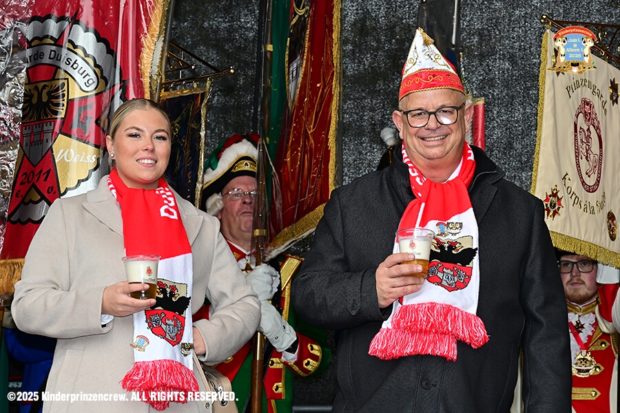 Samstag, 15. November, zogen wir mit den Duisburger Karnevalsgesellschaften vom Forum über die Königsstraße zum Burgplatz. Hier war dann die Auftaktveranstaltung des HDK. Um die Mittagszeit sind es über den Rhein nach Kamp-Lintfort gefahren, dort war in der Stadthalle die Proklamation von der Jugendprinzessin Sophie I. Am frühen Abend dann in die Aula, unsere Aula, vom Reinhard-und-Max-Mannesmann-Gymnasium, zur Auftaktsitzung unseres „Heimathafens“. Mit „stürmischer“ Begeisterung wurden wir dort empfangen.