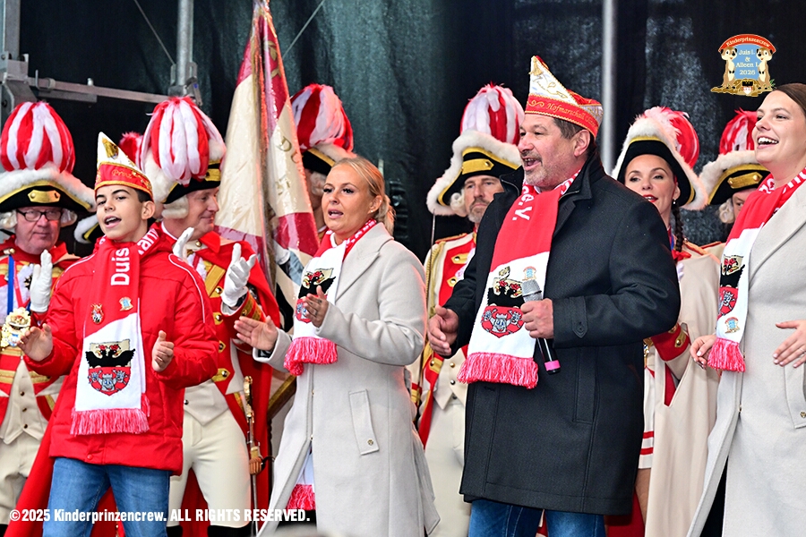 104 Auftakt HDK, Proklamation, Auftaktsitzung - Samstag, 15. November, zogen wir mit den Duisburger Karnevalsgesellschaften vom Forum über die Königsstraße zum Burgplatz. Hier war dann die Auftaktveranstaltung des HDK. Um die Mittagszeit sind es über den Rhein nach Kamp-Lintfort gefahren, dort war in der Stadthalle die Proklamation von der Jugendprinzessin Sophie I. Am frühen Abend dann in die Aula, unsere Aula, vom Reinhard-und-Max-Mannesmann-Gymnasium, zur Auftaktsitzung unseres „Heimathafens“. Mit „stürmischer“ Begeisterung wurden wir dort empfangen.