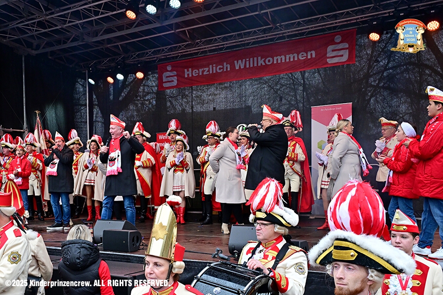 81 Auftakt HDK, Proklamation, Auftaktsitzung - Samstag, 15. November, zogen wir mit den Duisburger Karnevalsgesellschaften vom Forum über die Königsstraße zum Burgplatz. Hier war dann die Auftaktveranstaltung des HDK. Um die Mittagszeit sind es über den Rhein nach Kamp-Lintfort gefahren, dort war in der Stadthalle die Proklamation von der Jugendprinzessin Sophie I. Am frühen Abend dann in die Aula, unsere Aula, vom Reinhard-und-Max-Mannesmann-Gymnasium, zur Auftaktsitzung unseres „Heimathafens“. Mit „stürmischer“ Begeisterung wurden wir dort empfangen.