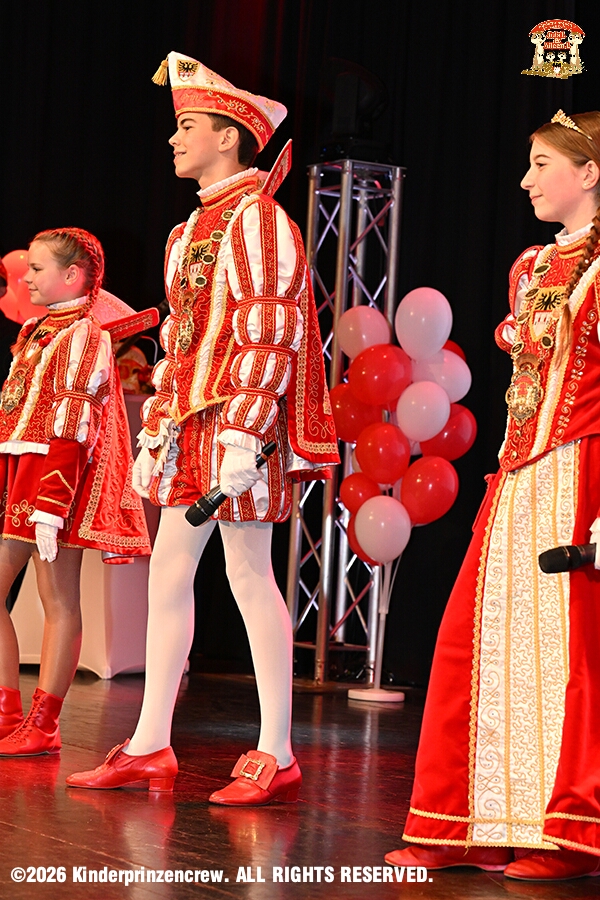 69 Unsere Kürung - Premiere - Im so genannten „Gürzenich“ von Duisburg, dem Steinhof in Huckingen fand am Sonntag, 4. Januar 2026, zum ersten Mal die Kürung einer Kinderprinzencrew statt. Wir sind nun als Prinz Juls I., Prinzessin Aileen I. mit Hofmarschall Sami und Pagin Paula der Stadt Duisburg 2026 inthronisiert.