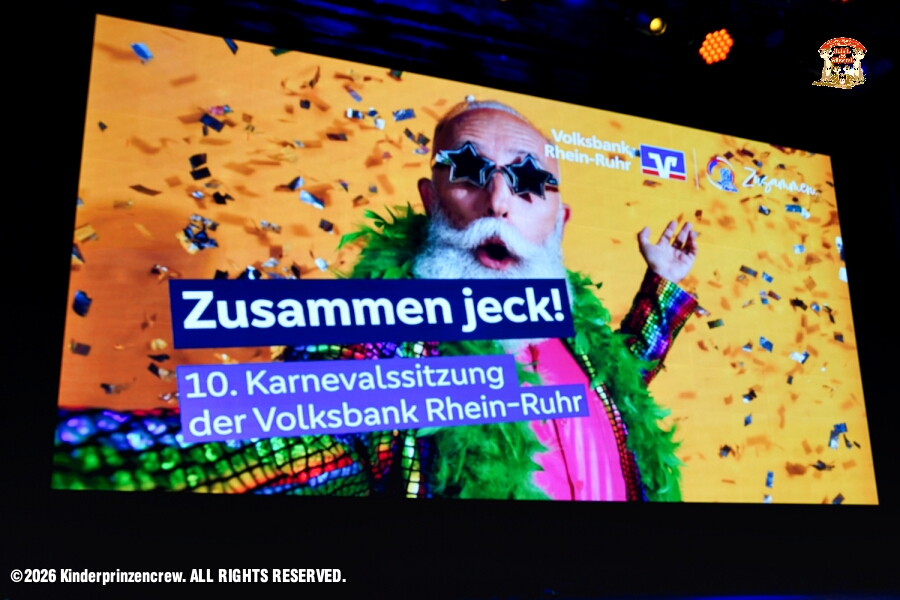 10 Bei der Volksbank - Im Steinhof in Huckingen veranstaltete die Volksbank Rhein-Ruhr wie im jedem Jahr ihre Karnevalssitzung. Wir, die Kinderprinzencrew, durften wiedermal unser Programm zeigen neben all dem großen Aufgebot aus Köln.