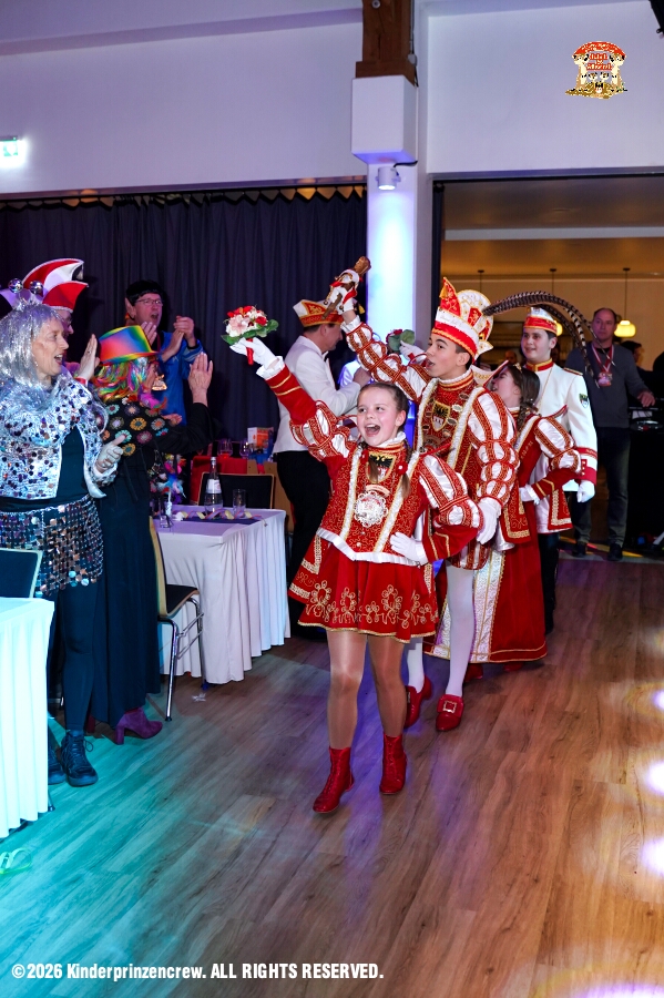 5 Bei der Volksbank - Im Steinhof in Huckingen veranstaltete die Volksbank Rhein-Ruhr wie im jedem Jahr ihre Karnevalssitzung. Wir, die Kinderprinzencrew, durften wiedermal unser Programm zeigen neben all dem großen Aufgebot aus Köln.